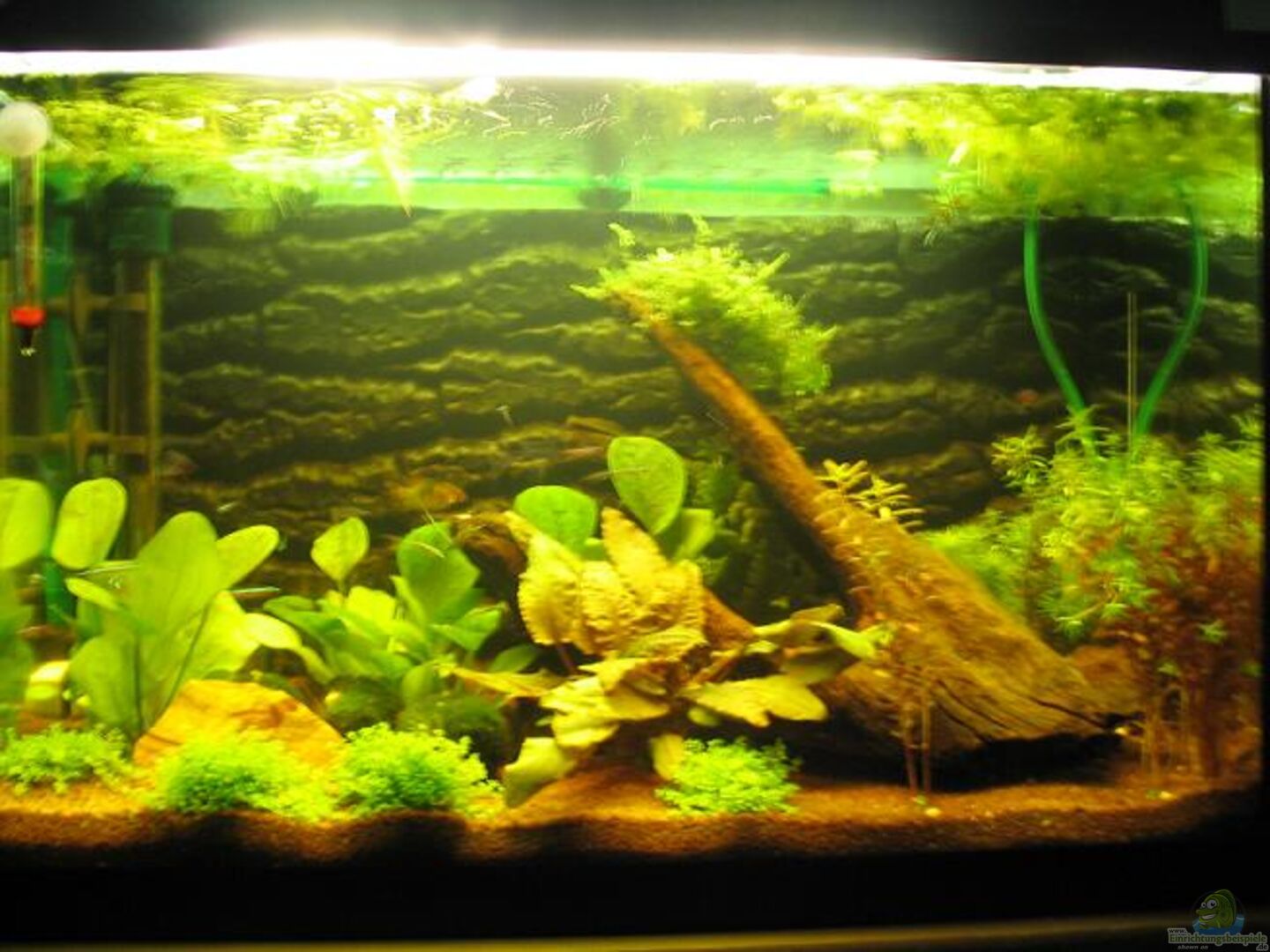 meines Erachtens stellst Du uns hier ein sehr schön eingerichtetes Becken vor. Wenn die Pflanzen noch etwas grö?er geworden sind, sieht man von der für meinen Geschmack noch etwas kahlen Rückwand auch nicht mehr so viel.