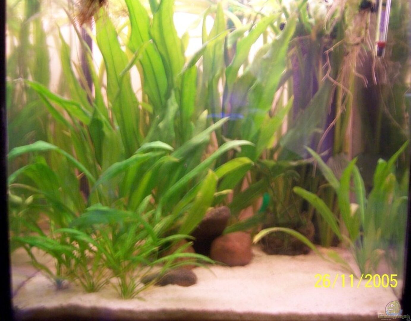 an sich ein schönes Becken, nur kommt mir der Aquarienkies (-sand) etwas zu fein vor (keine Durchflutung). Es kann zum "Verbacken" des Bodengrundes mit Faulgasbildung kommen. Au?erdem lieben es die Fische am Grund wohl eher etwas dunkler. Aber ansonsten, wie gesagt, sehr schön.