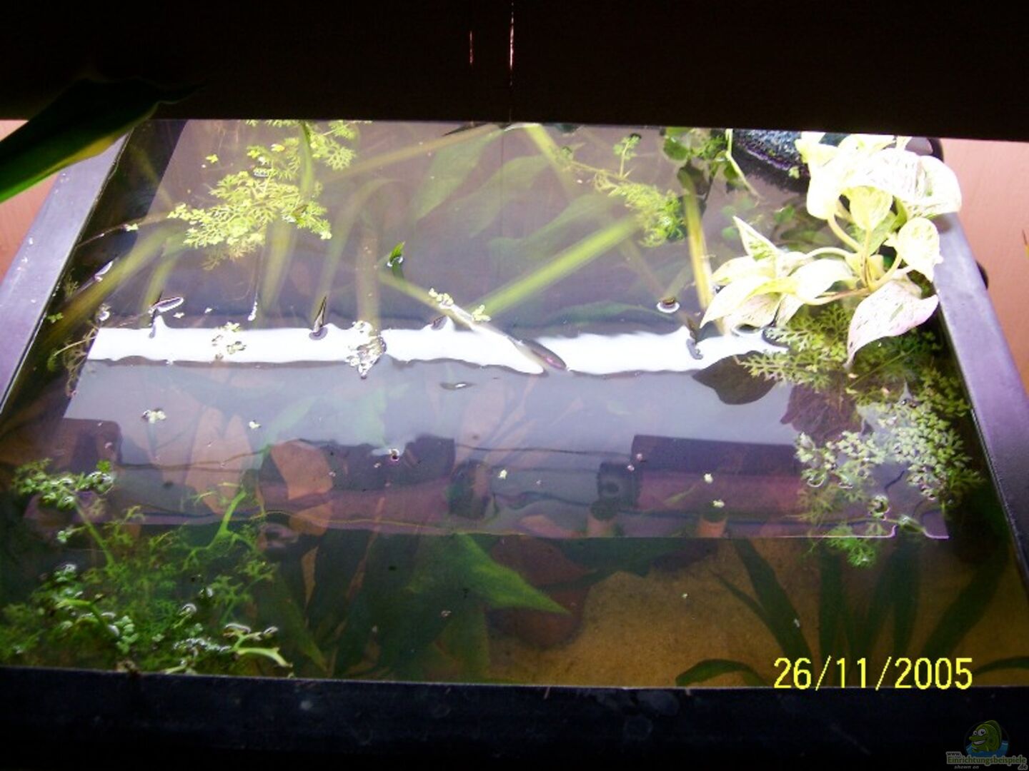 Zu den Bewohnern: Die Skalardame ist in ihrem neuen Domiziel aufgrund eines Glasbruches umgekommen. Alle Nachkommen konnten in gute Hände abgegeben werden, bis auf vier (min ein Pärchen);wer also Interesse hat... Die Welse, Schmerlen und Schwerträger haben ebenfalls ein neues zu Hause gefunden.