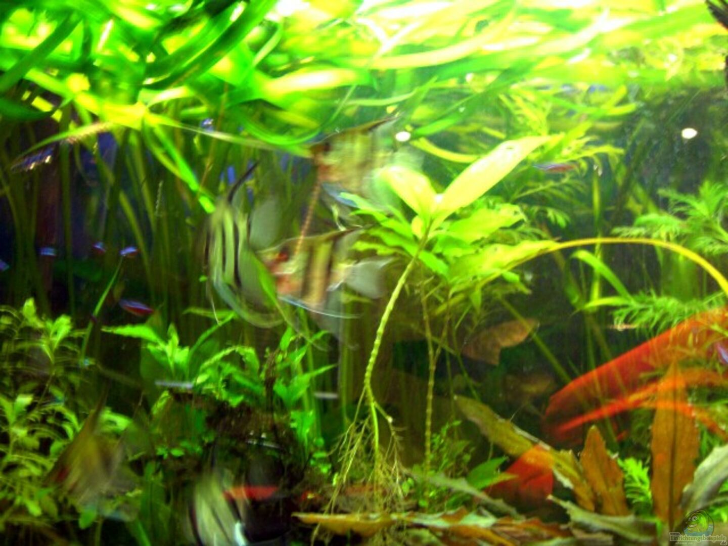 16. Juli 2008: So nach langer langer Zeit möchte ich mich mal wieder dieser Seite widmen. Es hat sich einiges in dieser Zeit getan. Leider hatte ich keine Zeit dieses auch auf dieser Seite zu aktualisieren. Deswegen möchte ich die Schulferien nutzen, um dieses zu tun. Zuerst möchte ich einiges zum Besatz erklären. von den anfangs 8 Skalarjungtieren sind nur noch 5 übrig. Diese sind aus mir unerklärlicherweise verstorben. Nach Paarfindung werde ich den Besatz auf 2 Pärchen reduzieren. Von den 10 Corydoras Sterbai, die ich anfangs beherbergte, lebt nur noch einer. Diese werde ich demnächst wieder auf mind. 15 aufstocken. Von den anfangs 44 Neons sind noch ca. 25 übrig. Dies war nicht anders zu erwarten, da ich sie ja als Minineons gekauft habe. Die Pflanzen sind mittlerweile, auch wegen des super Düngers, gut gewachsen. Auf den aktualisierten Bildern könnt ihr euch davon einen Eindruck verschaffen.