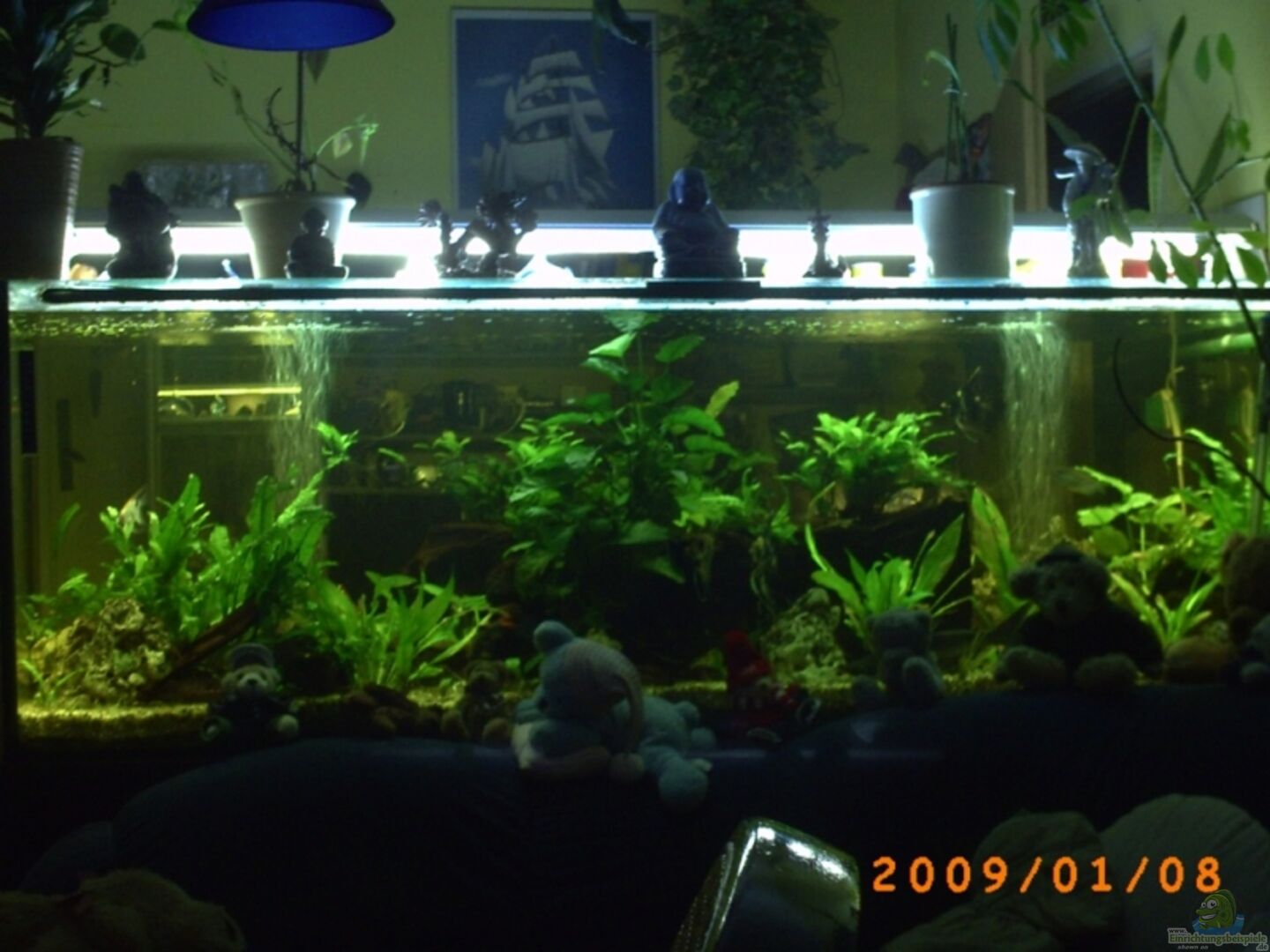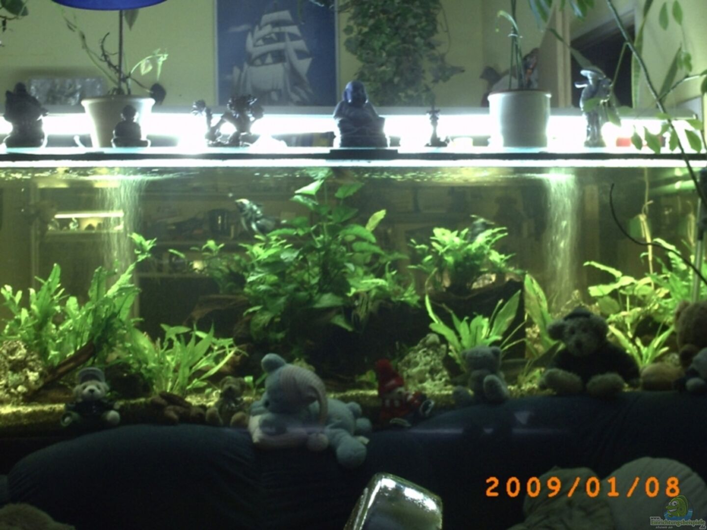 ich schlie?e mich der Jurybewertung an! Das ist eher eine Fischsuppe als ein Gesellschaftsbecken. Bitte erst über die Ansprüche und Haltungsbedingungen informieren (Internet, Bücher und nicht beim Händler. Die meisten erzählen viel, wenn der Tag lang ist und sie genug verkaufen können), dann de Fische kaufen, nicht anders herum!