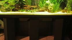 Das Untergestell besteht aus 5 Porenbetonsteinen 20 x 24 cm worauf eine Küchenarbeitsplatte liegt.Beides ist fest miteinander verbunden.Zwischen Platte und Aquarium ist eine Moosgummimatte.Eine dünne Silikonnaht zwischen Platte und Becken damit kein Wasser drunterlaufen kann.
