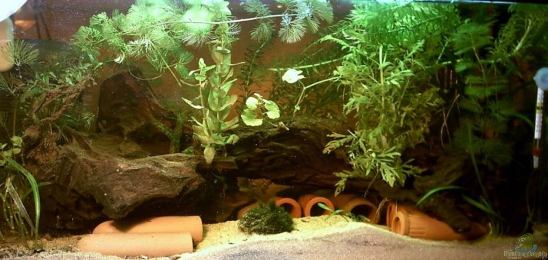 die Pflanzen habe ich mit Absicht so gewählt, weil ich in diesem relativ flachen Becken keine Schwimmpflanzen haben wollte und die Welse es lieber ein bisschen "düster" mögen ;)