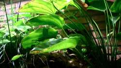 mitte rechts: Crinum thaianum, umgeben von Cryptocoryne crispatula und C. wendtii sowie Echinodorus osiris und E. schlueteri