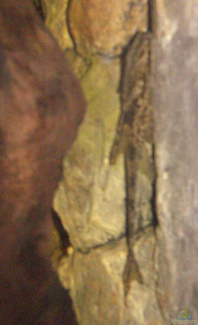 vom Vorbesitzer war in dem Becken ein Bereich von 15x15 als ??berlauf abgeteilt worden. Davon habe ich eine Seite rausgenommen und durch eine zurechtgeschnittene Filtermatte ersetzt. Sozusagen ein vorgeschalteter Mini-HMF. Dahinter ist jetzt ein Teil der Technik (Ansugrohr und Heizstab) ´versteckt´.