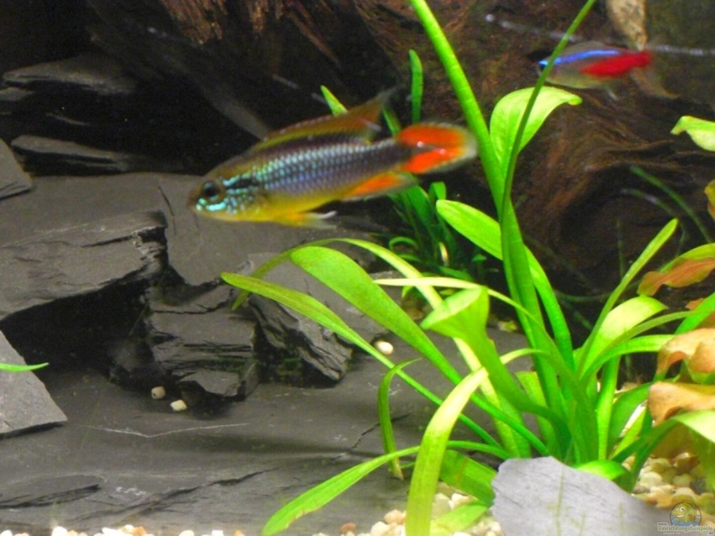 Grüsse, nettes Becken besonders der Schiefer kommt gut. Frage wie alt ist das Becken? Zu den Algen? bei dem Herzblättriger Wasserwegerich / Echinodorus cordifolius. Schaut ein bisschen unterernährt aus ein Düngen und das ab schneiden der Fauligen Blätter wirk sich negativ zum Algen wuchs aus. Andere seits brauch die Pflanze mehr Platz kann bis zu 60 cm Gro? werden bei einer min Beckenhöhe von 45 cm. Den einen Punktabzug geb ich weil Agassiz´s Zwergbuntbarsch der kann bis zu 10cm Gro? werden und sollte in einem 150L Becken gehalten werden. Ich kann dir den Borellis Zwergbuntbarsch empf. aba gut. Und was noch gut kämme 7-12 Neons. Grus Stefan