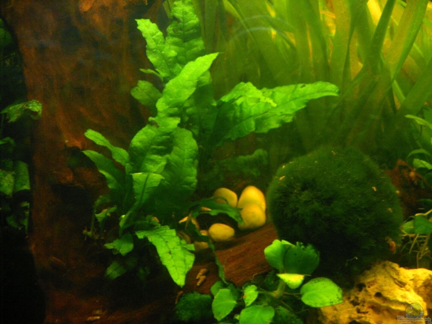 zu deinem Becken, sieht toll aus... nur was mir nicht so gefällt ist wenn das wasser wegen dem Torf so bräunlich wird, ich verwende deshalb das Aufbereitungsmittel `JBL ph-minus` um den pH und KH wert zu senken... wobei deine massnahme wahrscheinlich besser ist ;-)