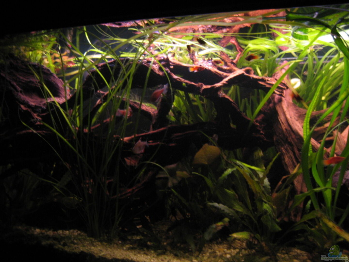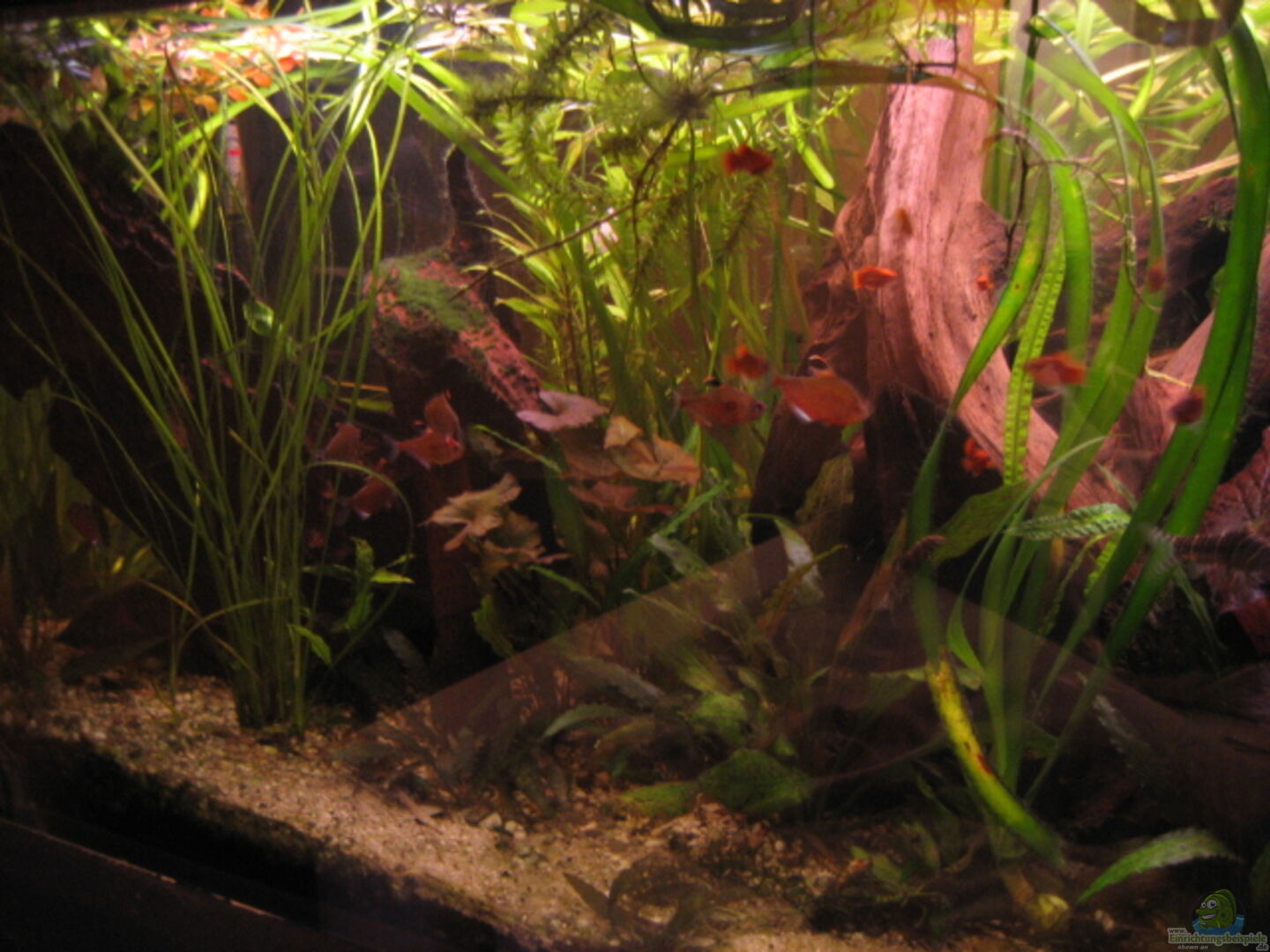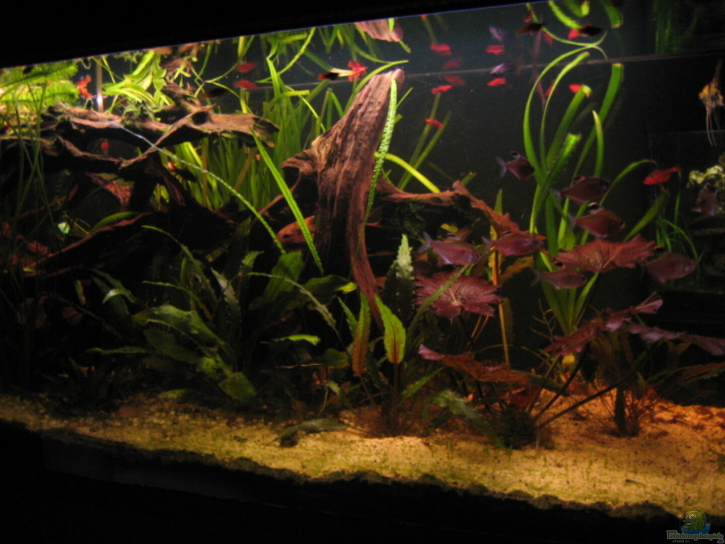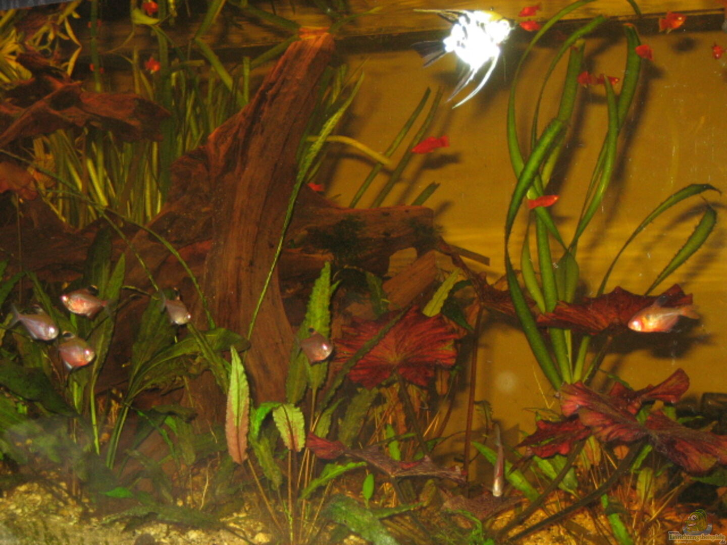 Daneben habe ich noch ein Malawibecken 120 x 50 x 60(hoch) und ein Aufzuchtbecken für Malawi: 80 x 40 x 50(hoch) sowie Aufzuchtbecken für Platy: 60 x 30 x 30 (wobei ich im Moment genügend Platy`s für das Becken habe und somit die Zucht eingestellt ist. Der Skalar und die Kirschflecksalmler haben somit unregelmä??ig natürliches Lebendfutter und finden es ganz spannend. Das kleine Becken ist somit nicht im Betrieb)