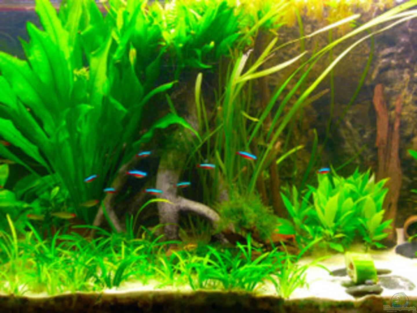 20.4.2007: komplette Neueinrichtung am 15.4.2007 , JBL Langzeitdünger, darüber 0, 1 - 0, 5 mm Quarzsand (den Panzerwelsen zuliebe), 1 neue, gro??e mangrovenwurzel mit vielen Höhlen. ??nderung des Pflanzplanes (Bestand ist jedoch geblieben, au??er den Vallisneria), neuer Filter (Eheim 2236 600l/h), Panzerwelse auf 8 St. aufgestockt. PH Wert seit 3 Tagen auf 6