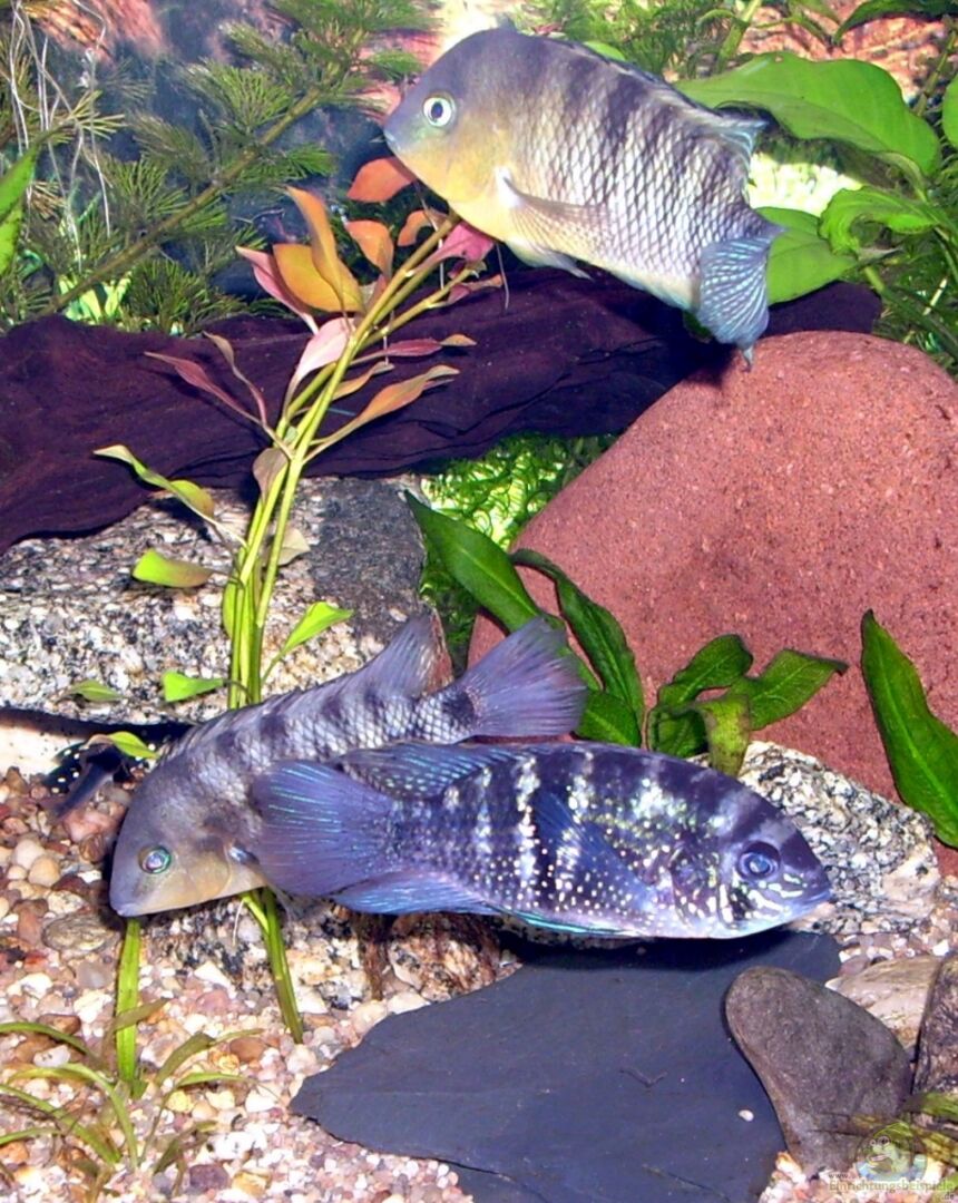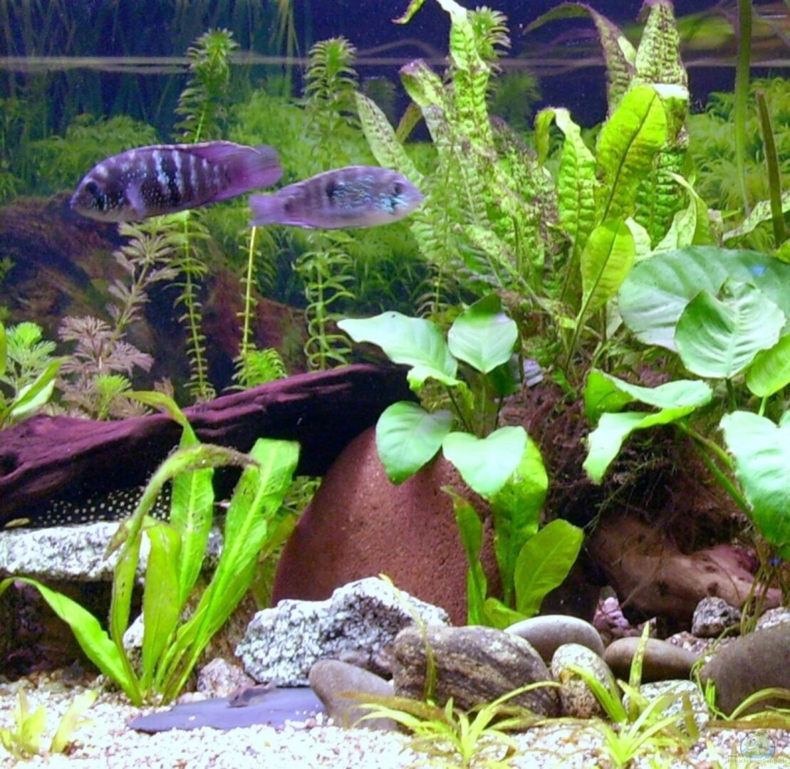 Alle Pflanzen bleiben von den Buntbarschen relativ unbehelligt. Bis auf die Zeiten der Eiablage der Blaupunktbarsche- dann rupfen diese vor allem an den Anubias?!