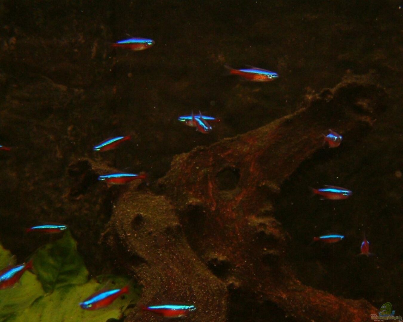Ich habe eine sehr schöne und angenehme Ruhe im Becken. Alle Fische harmonieren sehr gut miteinander. Auch zwischen Skalar und Neons gibt es keinen Stress. Es gibt keinerlei Atacken unter den Fischen. Mal ist das ramirezi-Männchen hinter seinem Weibchen her. Das ist aber, glaube ich, ganz normal.
