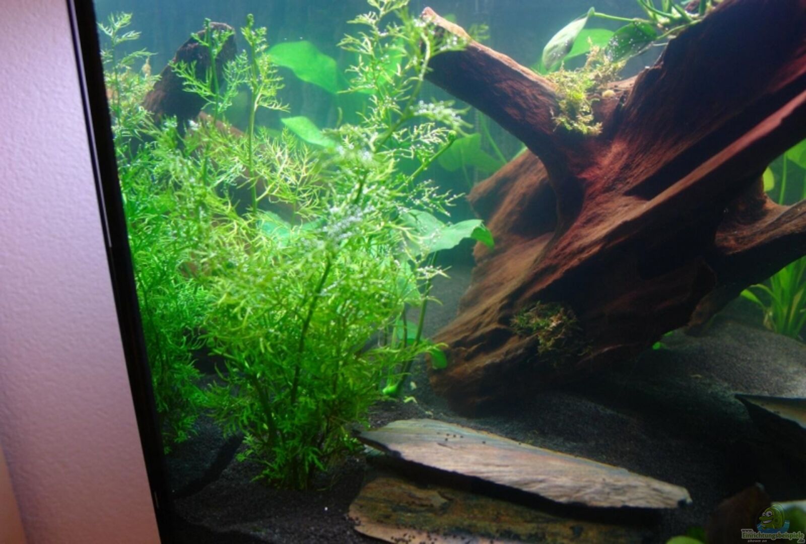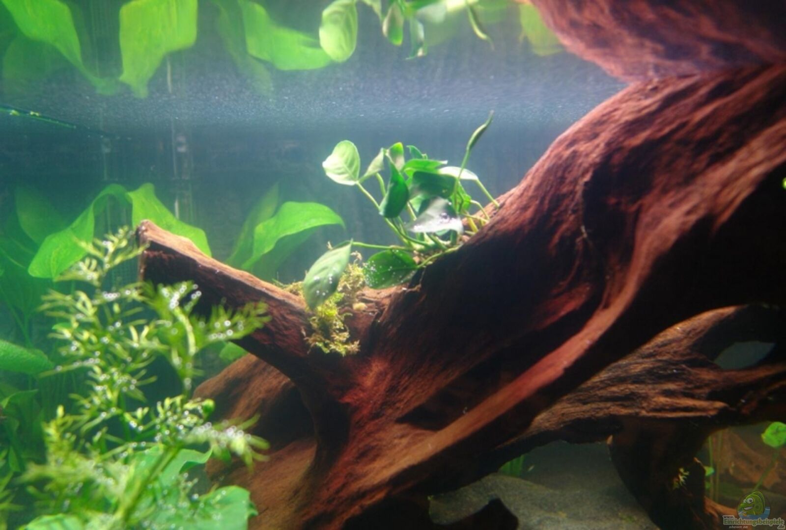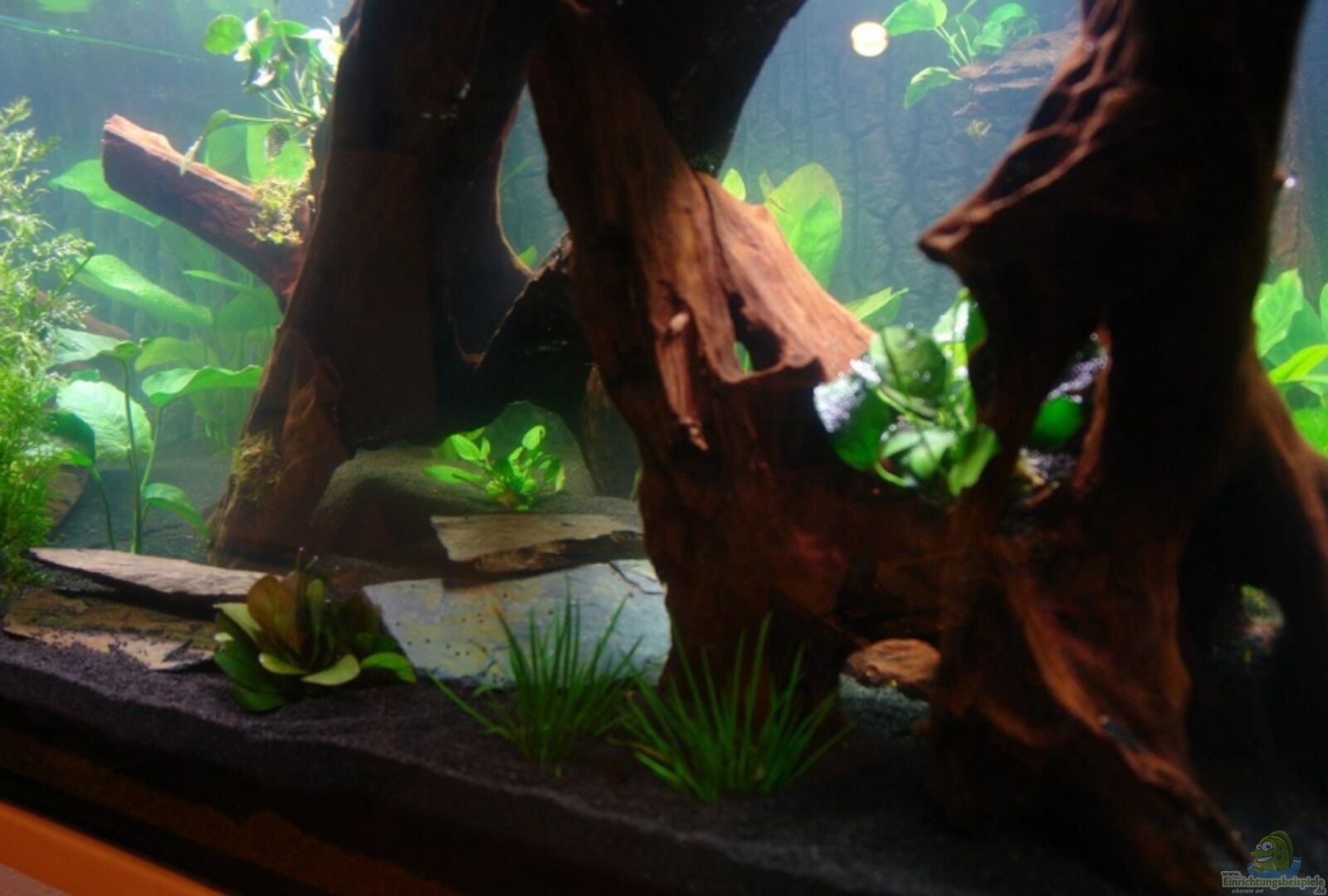 Das gro??e Moorkienholz wurde deswegen im Vordergrund gehalten, damit sich mein Antennenwels dort wohlfühlen kann. Hinter dem Holz ist ein gro??er Schwimmraum wo sich auch die meisten Pflanzen befinden.