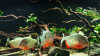 5 Diskus türkis 2 davon aus eigener Zucht, 10 Metallpanzerwelse, 3 Hexenwelse, 1 Kammdornwels , cirka 10Antennenwelse (am Anfang warens 3, sehr gebärfreudigs Volk!) 3 Prachtschmerlen(ich weiss die gehören hier absolut nicht her mu??te sie von einem Bekannten übernehmen aus dessen Becken sie herausgewachsen waren), 35 Rotkopfsalmler