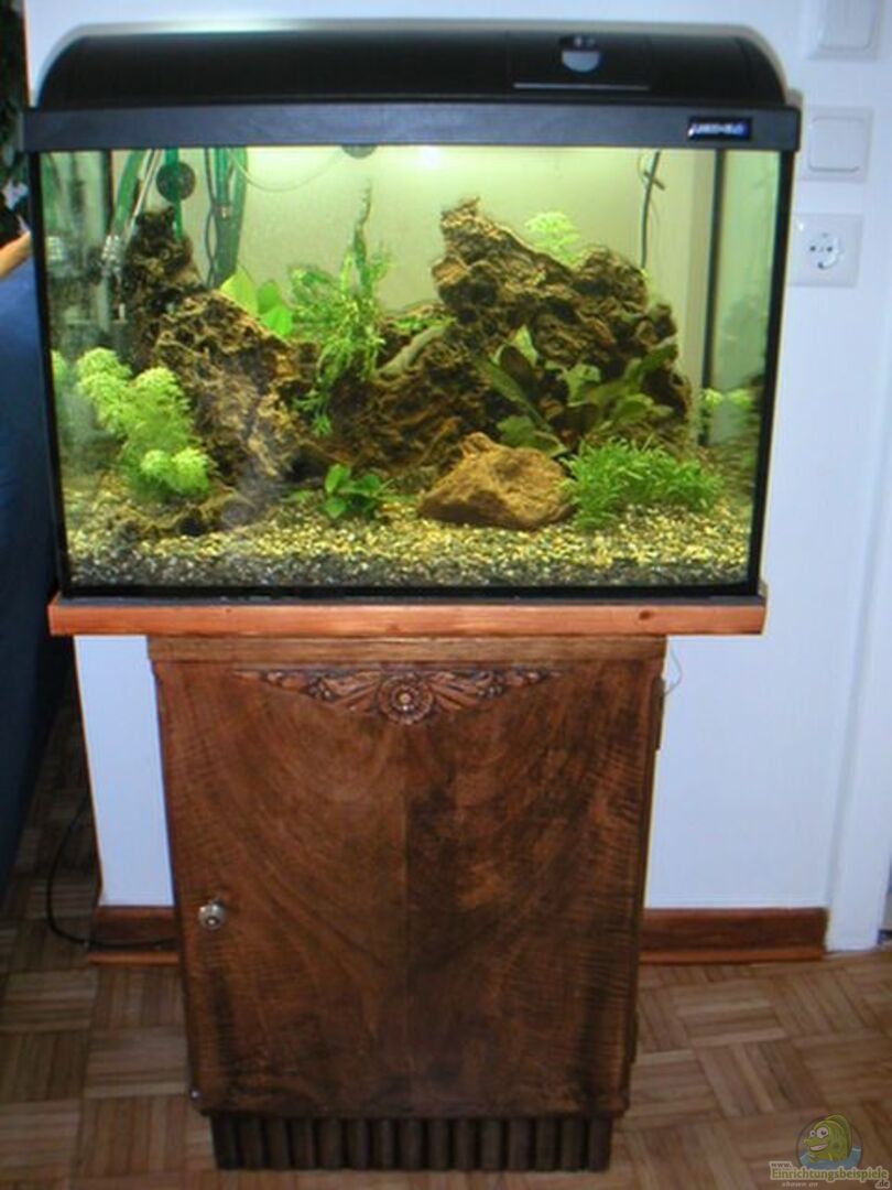 50 W Heizstab, Digitalthermometer, SICCE Kreiselpumpe (Mouse M1) zur Strömungserzeugung und Oberflächenbewegung (30- 300 l/h regulierbar) mit 180 l/h in Betrieb, CO² Zugabe über Flasche mit Dennerle Profi 2000 Armatur und Nachtabschaltung von 23.00 bis 09:30 Uhr (Der CO² Zuleitungsschlauch wird in den Ansauger des Filters geleitet)
