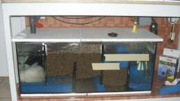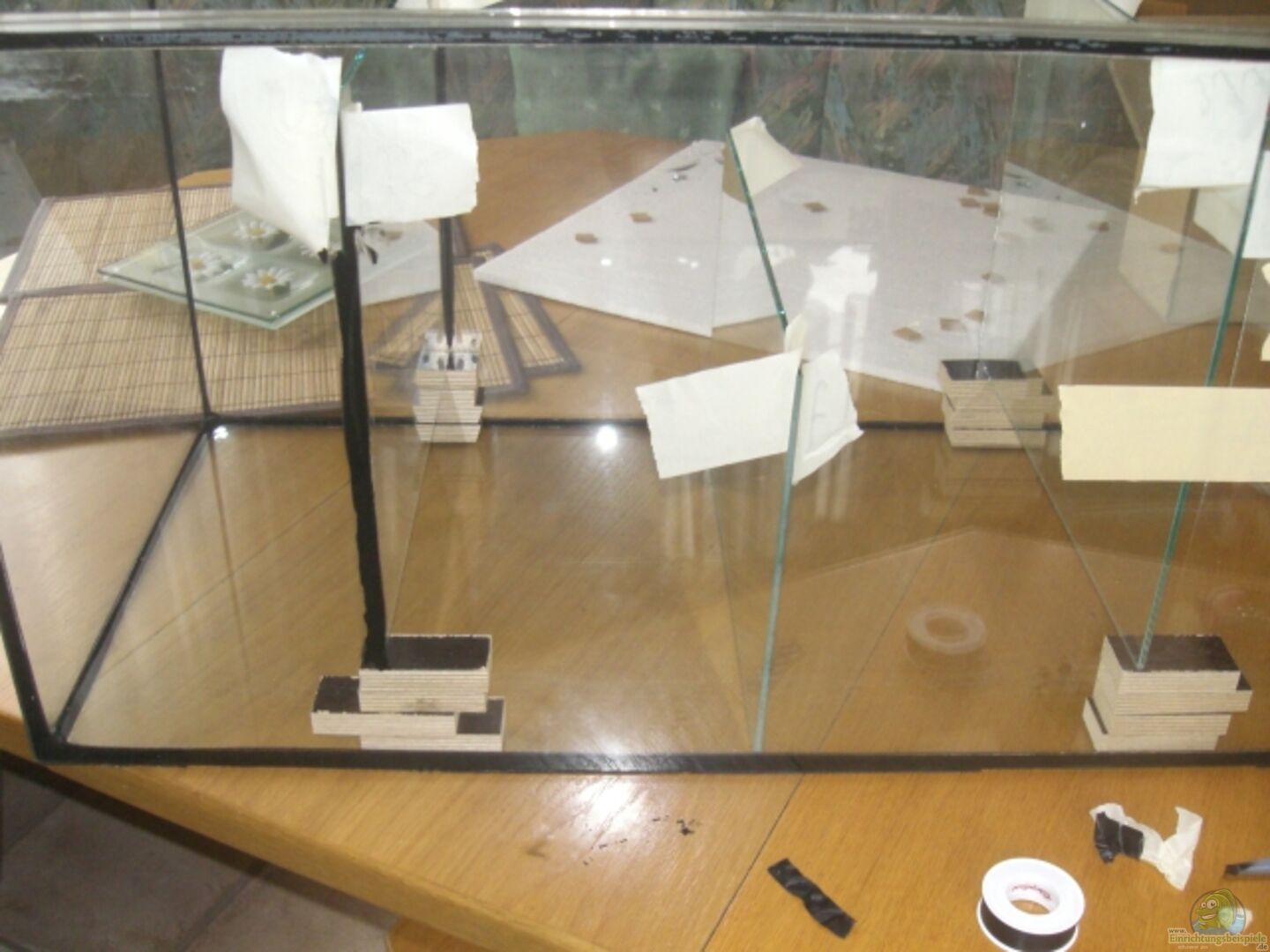 Ich lies mir beim Glaser in die Rüchwand 2 Löcher für Ablauf und Zulauf bohren, da ich mich für ein selbstgebautes Filterbecken entschied.