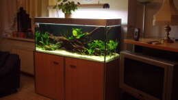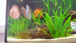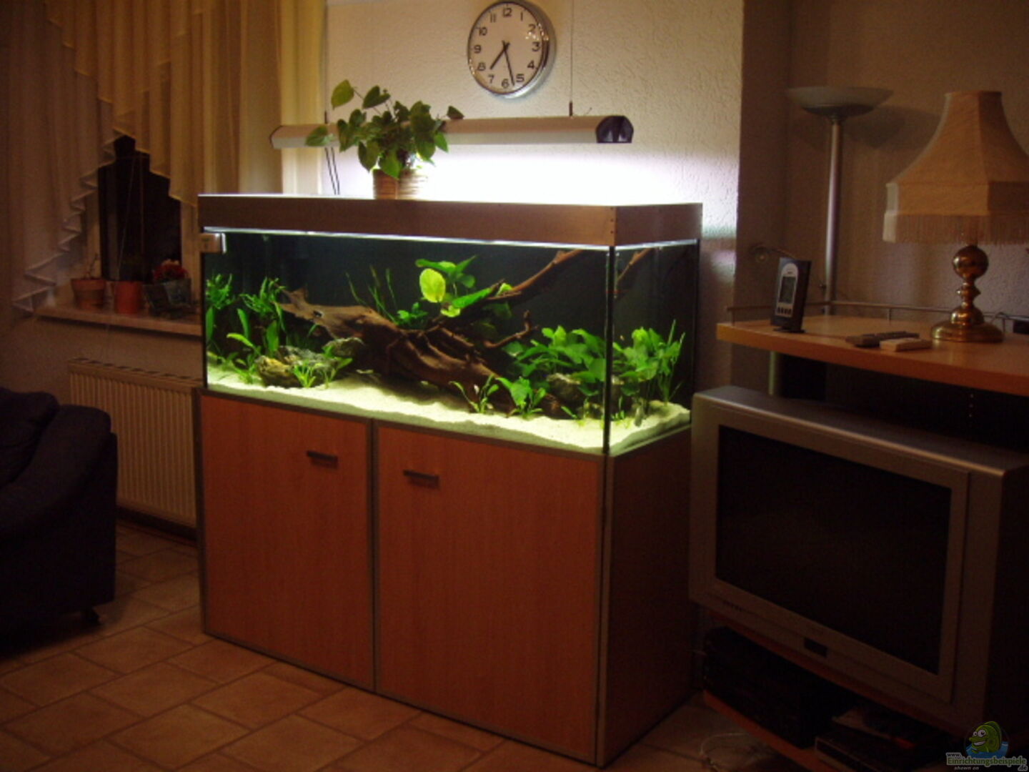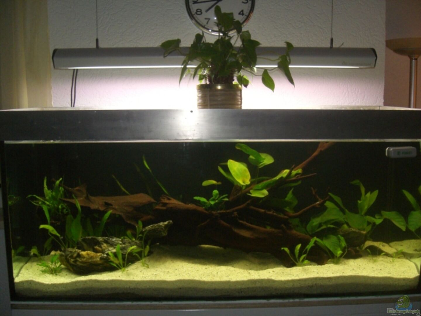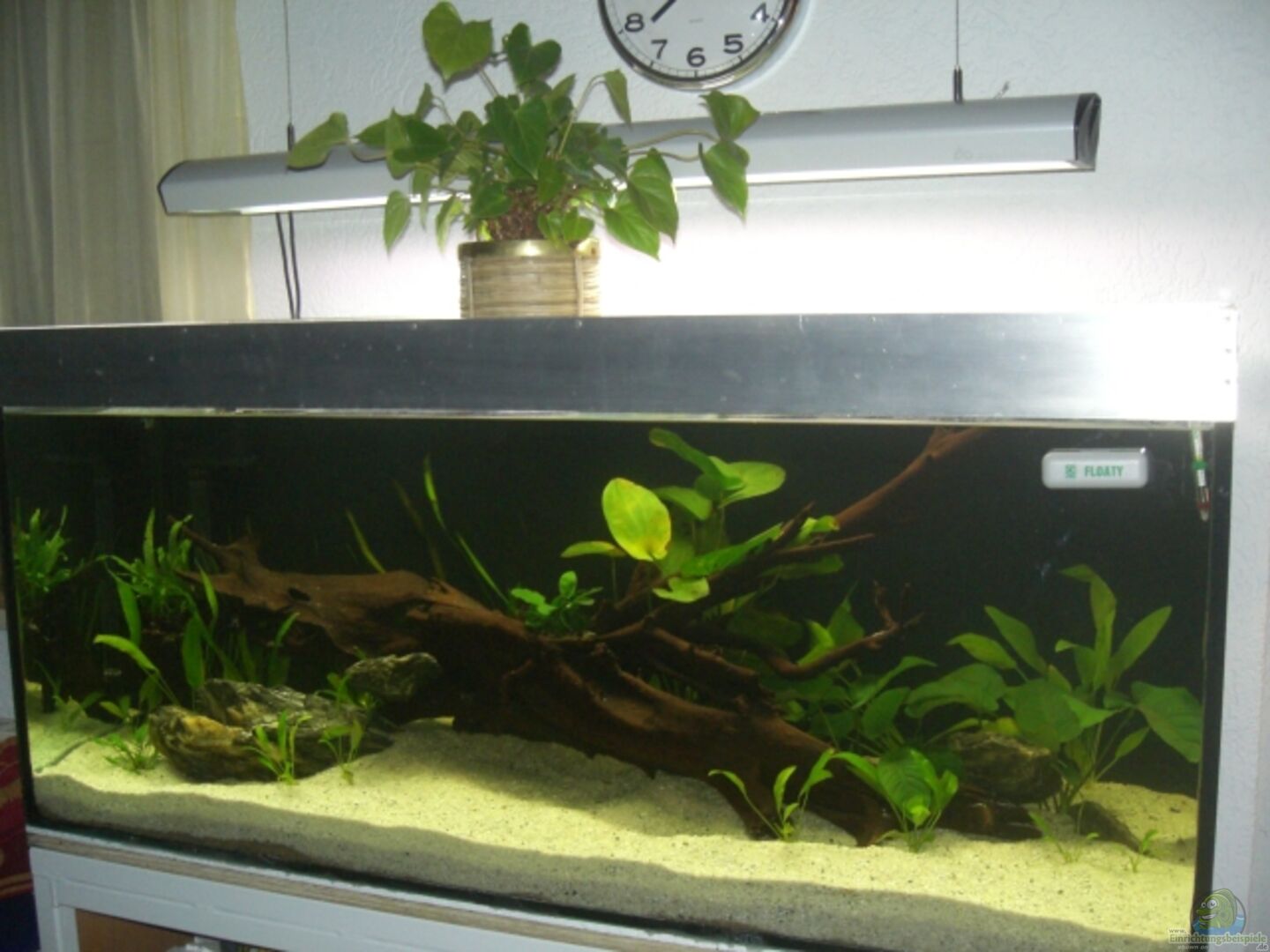 Ein schönes Aquarium die Wurzel mit der dunklen Rückwand und die Pflanzen kommt echt gut.