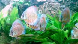 Die Disken haben jetzt ca 8 - 12 cm Durchmesser und erfreuen sich bester Gesundheit. Sie bekommen Tag für Tag mehr "Farbe" und auch ihre anfängliche Scheu hat sich mittlerweise gelegt. Von 10 gekauften Disken habe ich 9 gro?? bekommen. In angetracht der Tatsache, das man bei Jungdisken < 6, 5 cm von einer Mortalitätsrate von mindestens 30% ausgeht, kein schlechtes Ergebniss. Trotzdem würde ich mir keine so kleinen mehr kaufen und empfehle allen die mit Disken anfangen wollen sich ihre Schützling mit mindestens 7 cm Durchmesser zu kaufen und es Profis zu überlassen sie gro??zuziehen. Es war teilweise verdammt nerfenaufreibend und ich hatte nicht nur eine schlaflose Nacht weil einer mal wieder nicht fressen wollte.