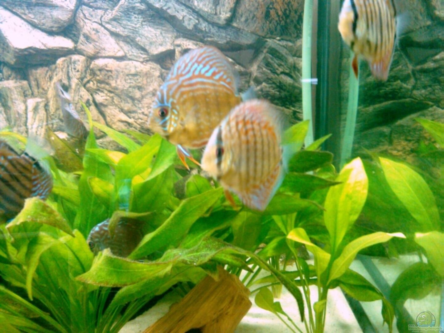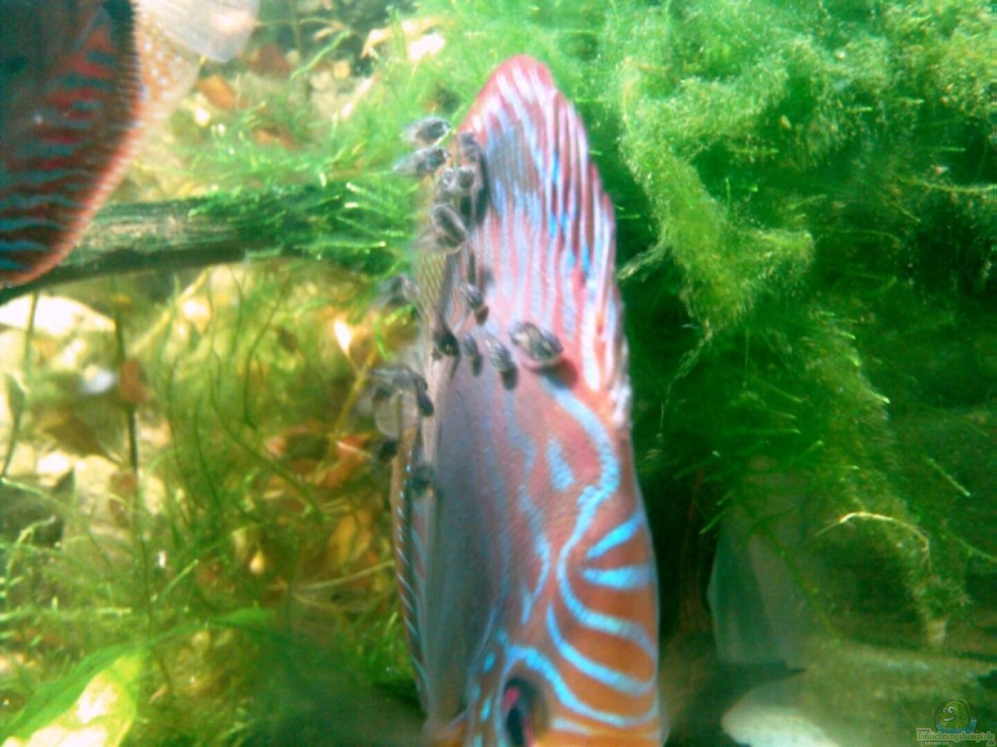 07.05.2009 Ja es ist länger nichts passiert in meinem Einrichtungsbeispiel. Von 10 Disken haben sich 4 Paare gebildet die Regelmä??ig Ablaichen. Leider habe ich die JHungen nie über das Anschwimmen hinaus gebracht. Die Larfen schwammen an und waren am Nächsten Tag verschwunden. Ich habe es mit einem seperaten Aufzuchtbechen versucht. Hab einfach das vielversprechendste Pärchen in Einzellhaft gesperrt und wollte schauen was passiert. Nichts -.- ich hatte Zeitweise 4 Gelege gleichzeitig im Becken. Keines der Päärchen hat die Larfen auch nur auf 5 mm grö??e bekommen. Dann als ich schon aufgegben hatte und mich nicht weiter um Nachwuchs bemüht hatte, wieder ein geschüptes Gelege. Fix das Gelege samt Eltern mit einer Filermatte vom gierigen Rest abgetrennt und schauen was passiert. Die Jungen sind ca 50 an der Zahl und jetzt ca 8 mm gro??. Weiter Berichte folgen :)