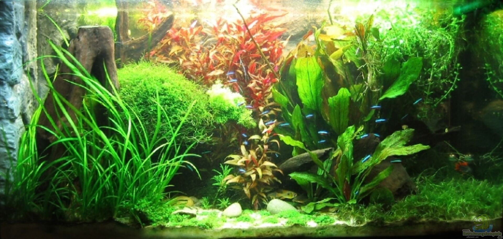 - Einen Gro??teil der Pflanzen ausgemistet. Vorallem das Fettblatt hat viel Licht verschlungen, was der Schwertpflanze nicht gut bekommen ist. Auch das Papageienbaltt wurde stark zurück geschnitten, da schon zig Triebe aus dem Wasser heraus wuchsen. Entsprechend wurde der Dünger reduziert (Drak-Mix von 7ml auf 5ml und PO4 auf 1-2ml pro Woche).