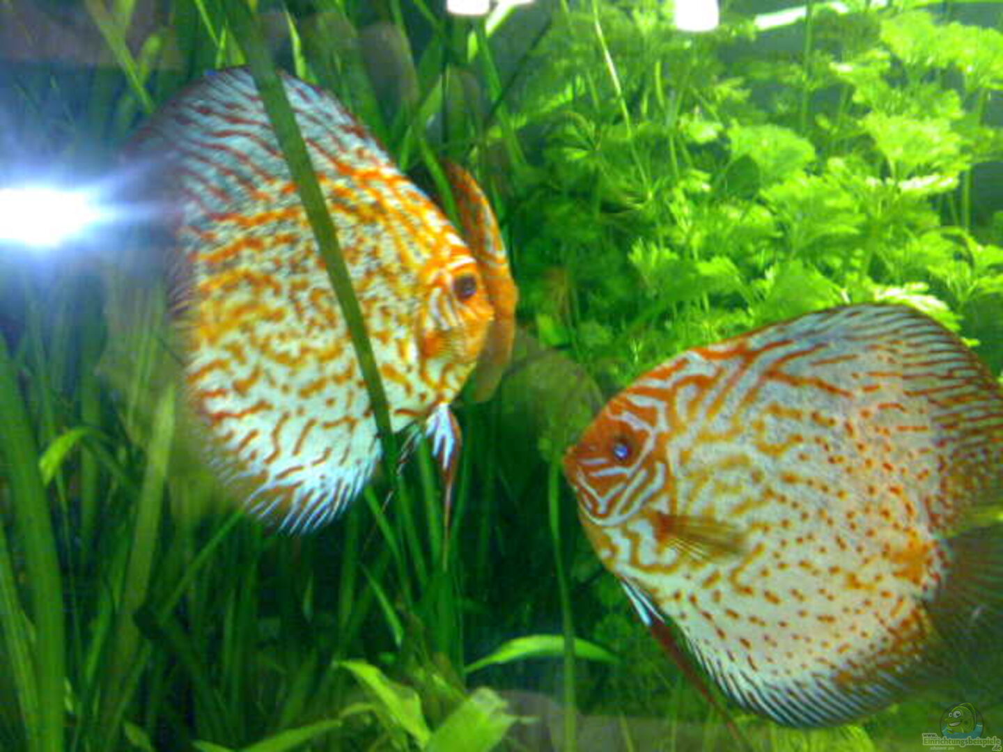 das sind wunderschöne Diskusfische. Das Becken gefällt mir sehr gut.