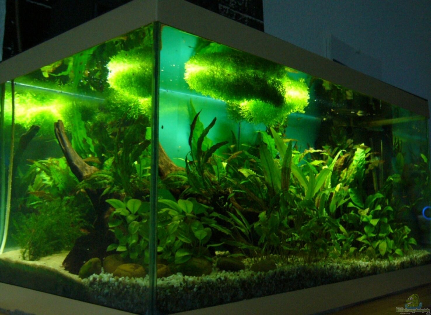 3.12.07 Neue Rückwandhintergrundfolie. bewusst dieses blau gewählt. Red Cherry eingesetzt und Nachwuchs bekommen. Riccia eingesetzt und an der Wasseroberfläche treiben gelassen. Ein paar neue Fotos