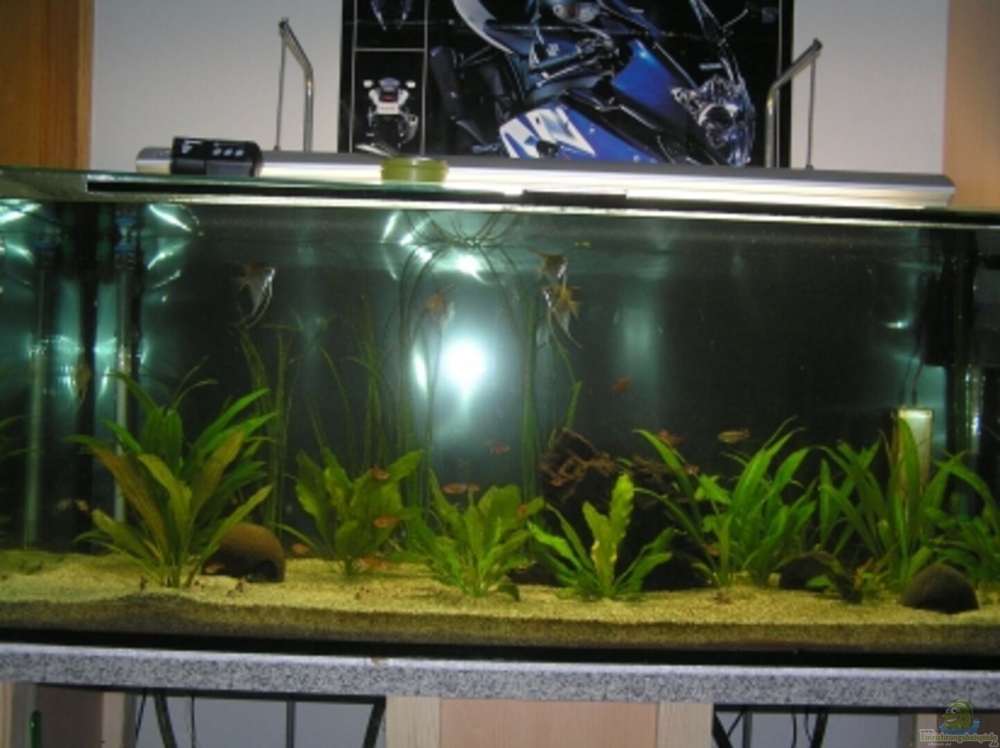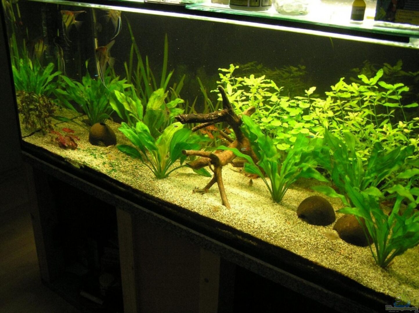 ca. 20kg JBL Nährboden und darauf dann 50kg Kies mit der Körnung 0, 8-1, 2mm gerundet und somit für Panzerwelse geeignet.