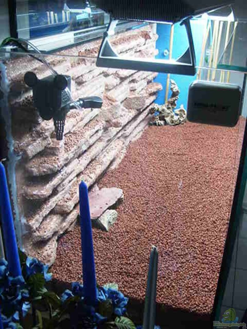 Neben dem Hauptbecken befindet sich noch ein Zucht/Quarantäne-Würfel 50x50x50, dieser ist momentan in der Einfahrphase.
