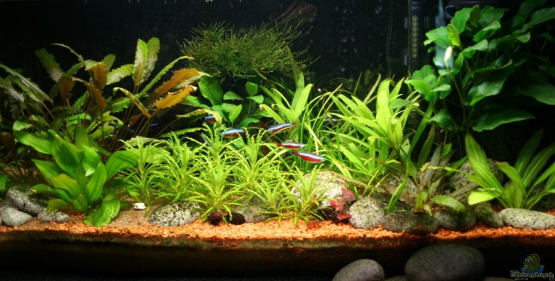für ein Aquarium dieser Grö?e ist es phantastisch eingerichtet! Auf den ersten Blick dachte ich, es sei ein 80cm-Becken. Sehr schön gemacht. Die Steine, die davor liegen scheinen die optische Tiefe noch zu erhöhen. Hast Du vielleicht mal ein Foto, wie das Becken im Raum steht?