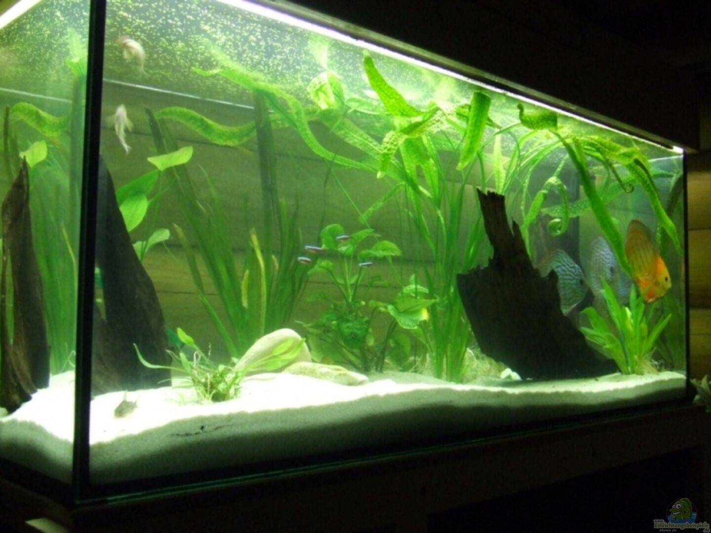 das Becken ist für Diskus ungeeignet, da zu klein. Man rechnet ca. 50l pro erwachsenem Tier, mind. 60 cm Beckenhöhe wären gut. Die Einrichtung wirkt ziemlich kahl und die Bretterwand ist nicht unbedingt ein Augenschmaus. Handelt es sich bei dem Wels um Auchenipterichthys longimanus? Ein Bild wäre schön. Die Technik würde ich besser verstecken und dem Becken eine Rückwand gönnen, siehe z.B. bei den Blogs.
