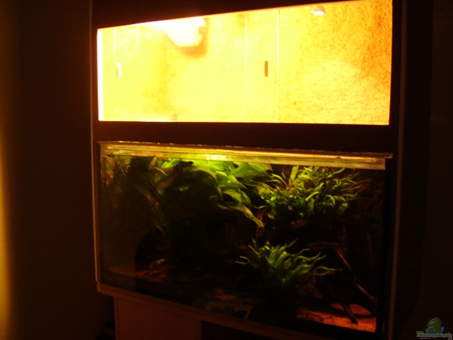 selbstgebaute Abdeckhaube 100 x 40 x 50, zwei Schiebescheiben, Innenwände mit Kokosfasermatten verkleidet.