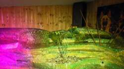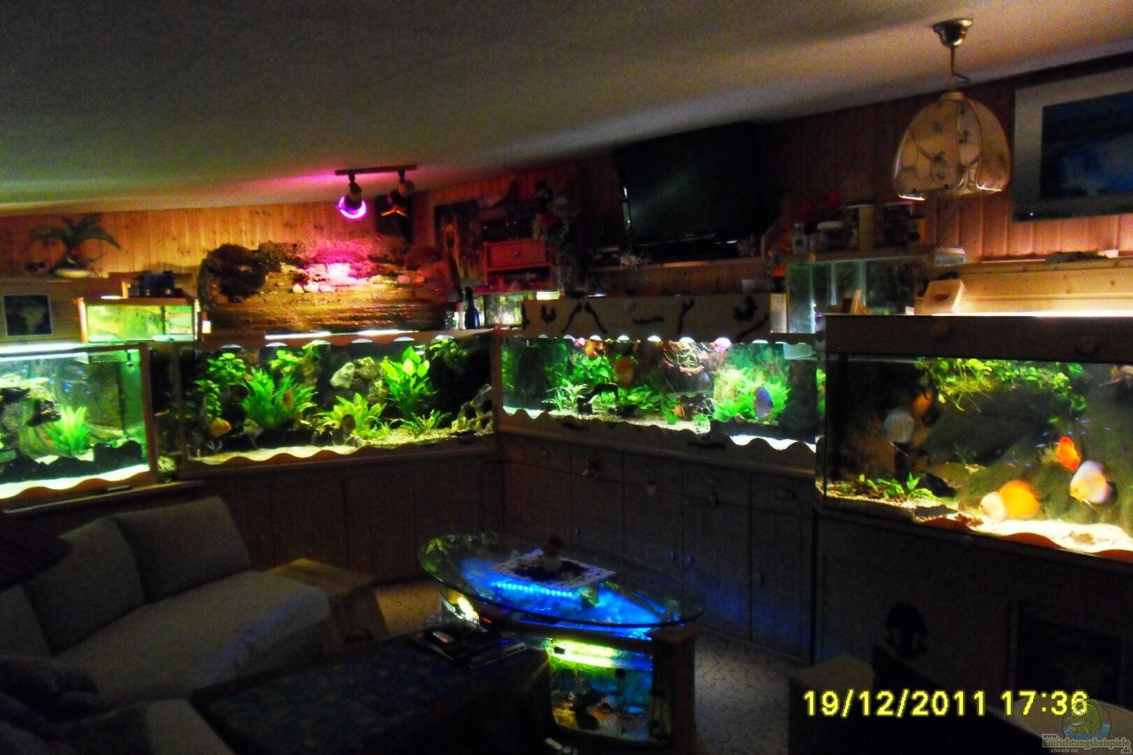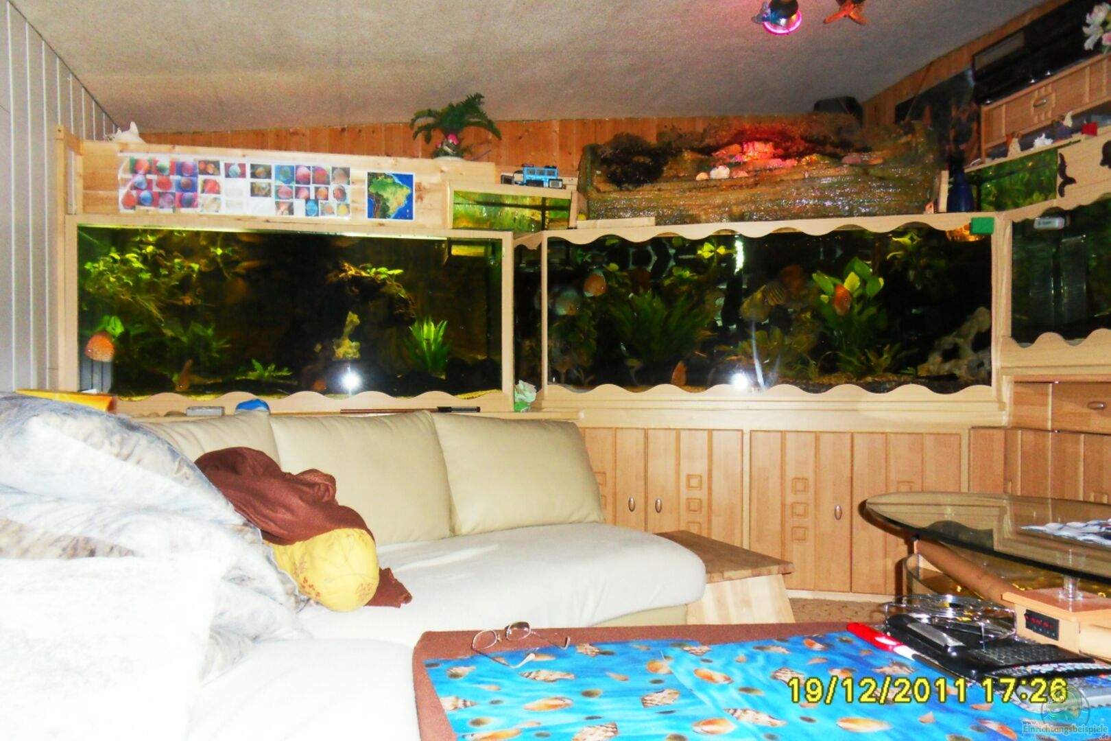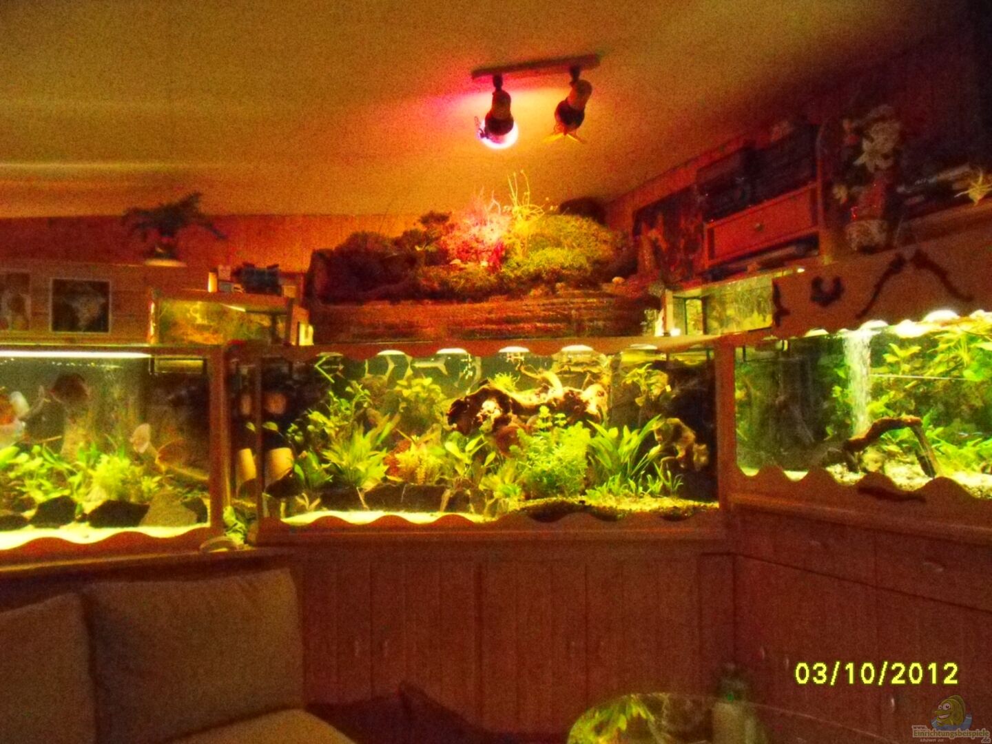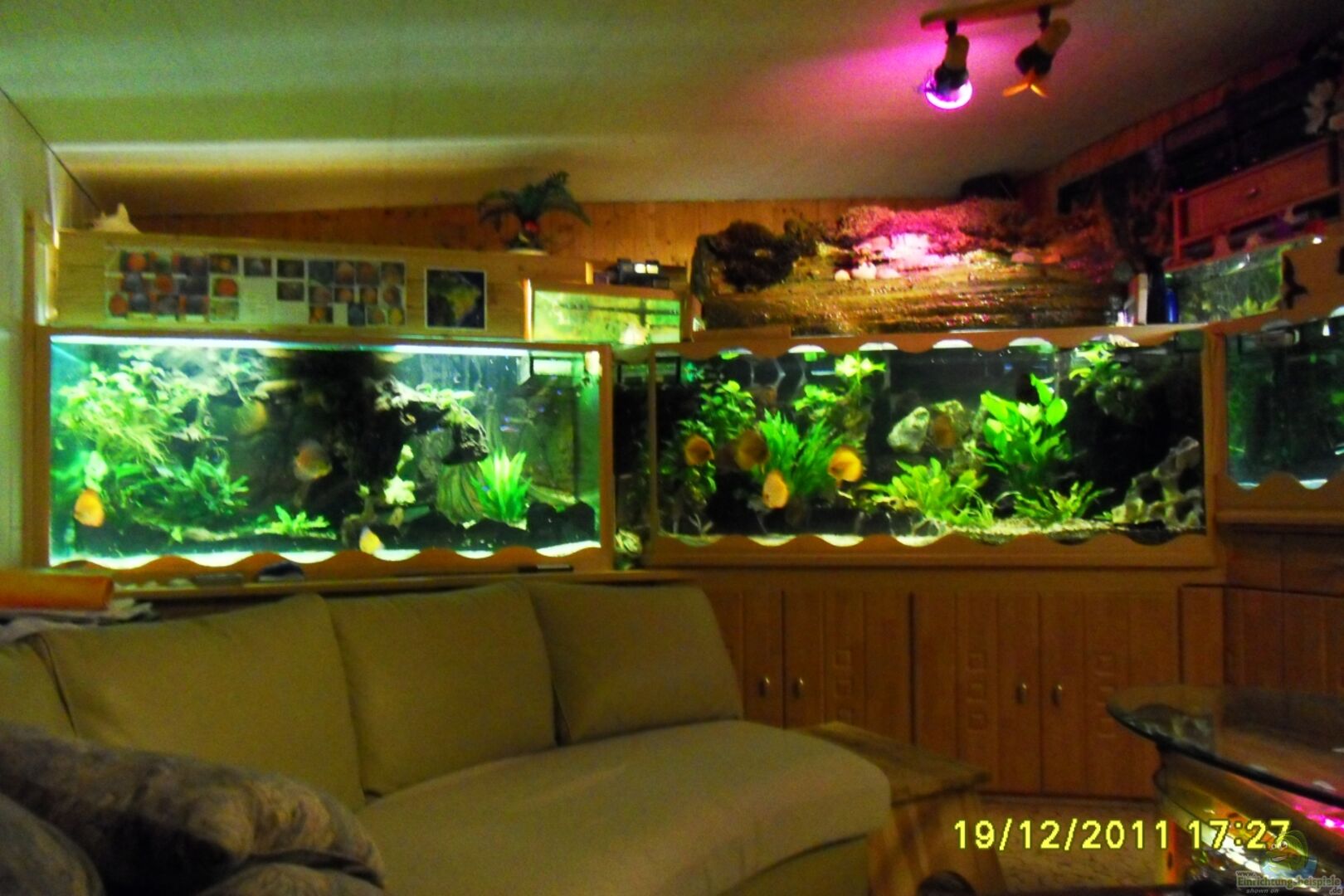 Das 375 Liter Becken wurde ersetzt durch ein 900 Liter Becken, alles etwas umgestellt, Gesamtes Wasservolumen brutto sind nun 3920 Liter in unserer Wohnstube.