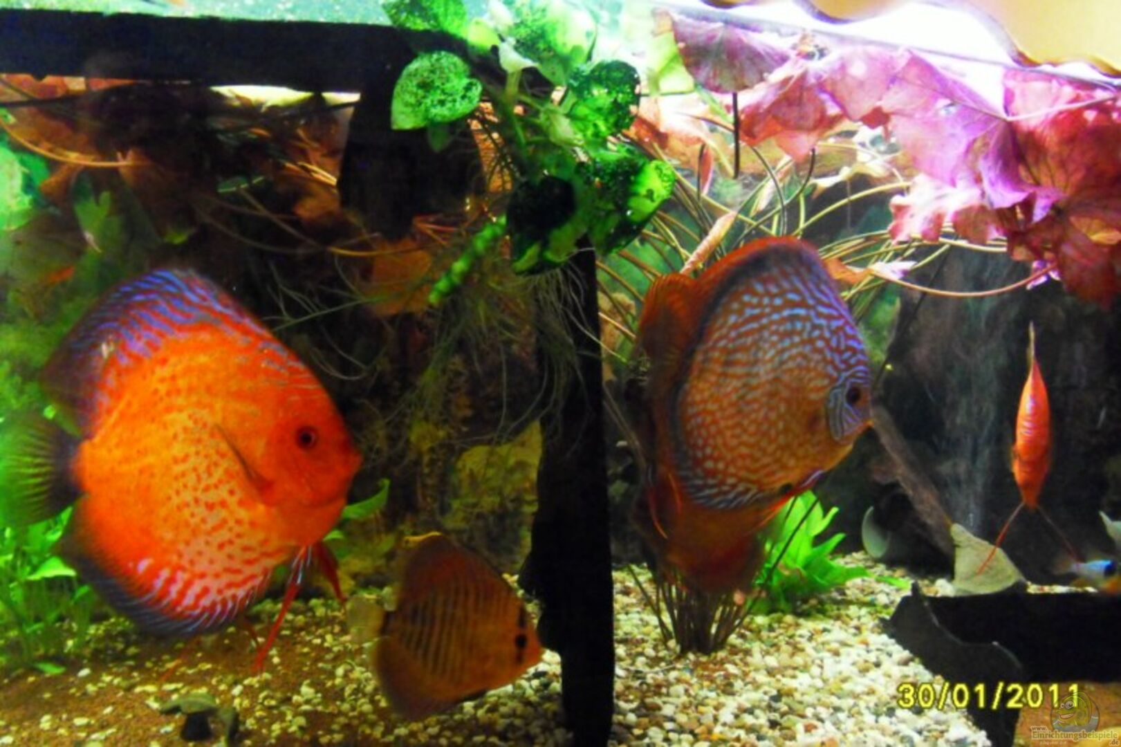 Weil ich noch kleine Disken (6 cm) im Becken habe wird bis zu 4mal am Tag gefüttert, die sind nun gro?? und bekommen nur noch 2 mal am Tag .