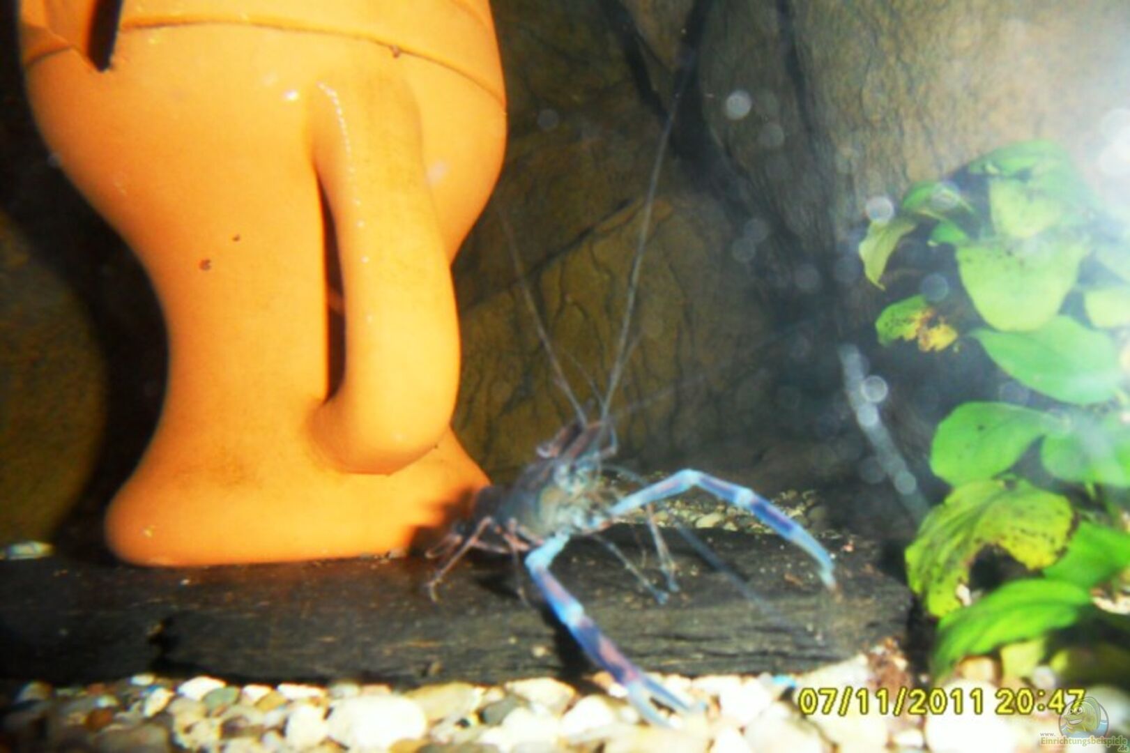Bei der Blauen Mexicogarnele, werden die Männchen ca. 7cm lang und die Weibchen ca. 5 cm lang. Besondere Wasserwerte benötigen die Tiere nicht und die Wassertemperatur sollte zwischen 20°C und 30°C liegen, also genau das richtige für meine Anlage. Einige Garnelen haben auch schon die ??bergänge zwischen den Aquarien gefunden.