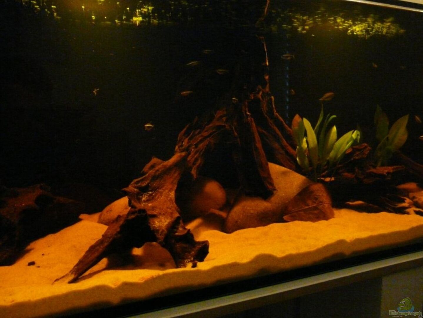 Was die Bilder der Geophagen und des restlichen Besatzes angeht, da arbeite ich dran. Die Geophagen sind erst seit einer Woche im Becken und ich möchte sie nicht unnötigem Stress aussetzen indem ich mit der Kamera vor dem Becken herumfuchtle ;-) Sie sind im Moment noch etwas scheu aber das legt sich von Tag zu Tag mehr. Ein weiterer Schwierigkeitsfaktor ist das Licht, es erschwert das Fotografieren ungemein besonders wenn die Fische unruhig sind. Aber ich bleib dran, versprochen ;-)