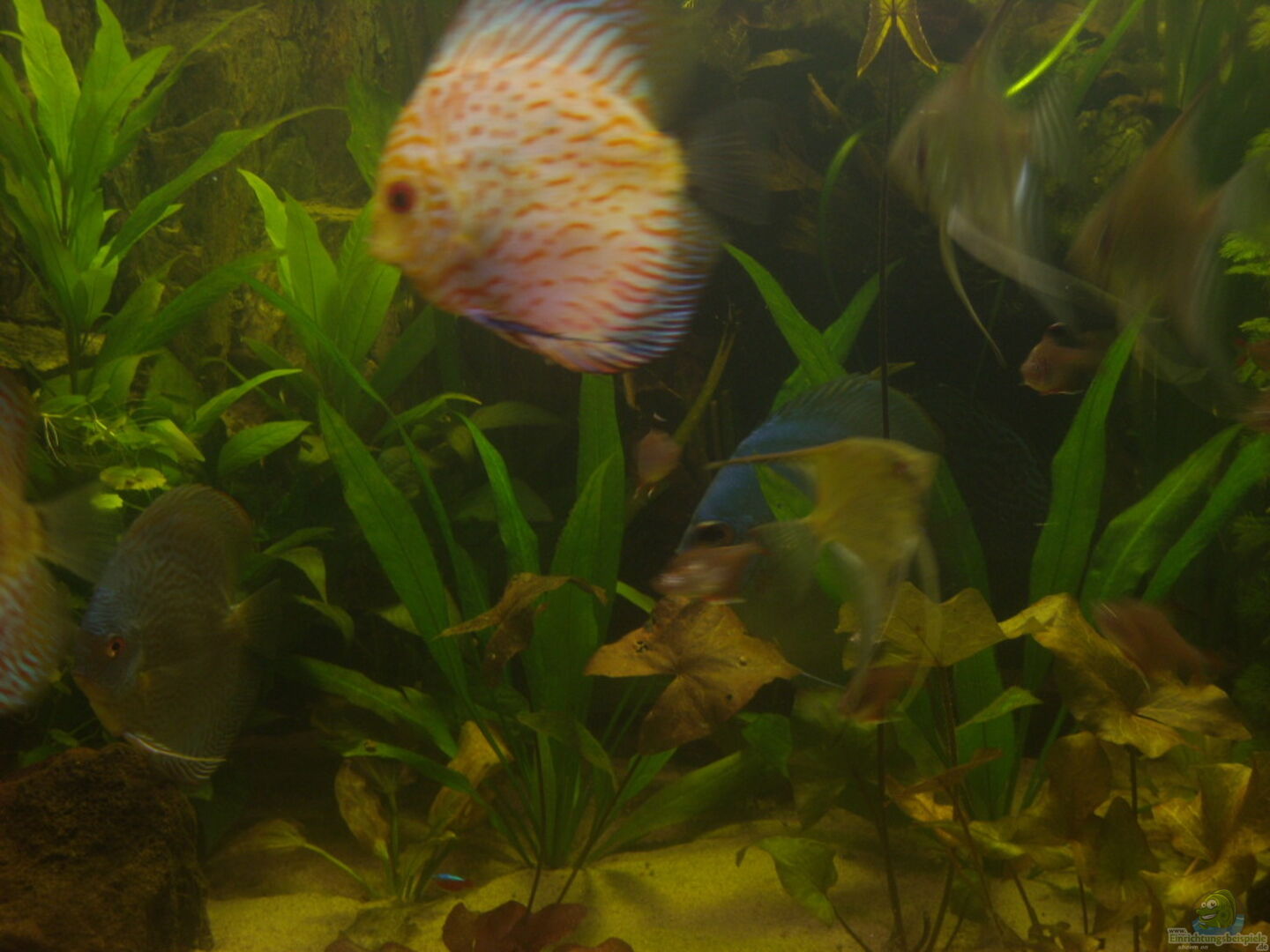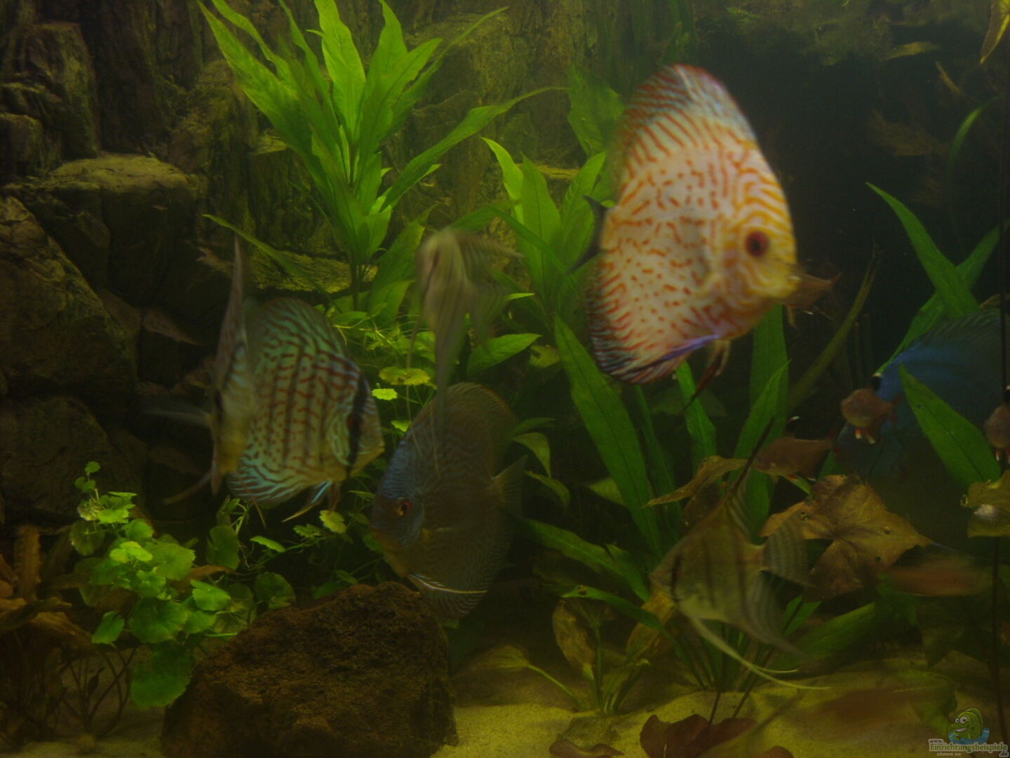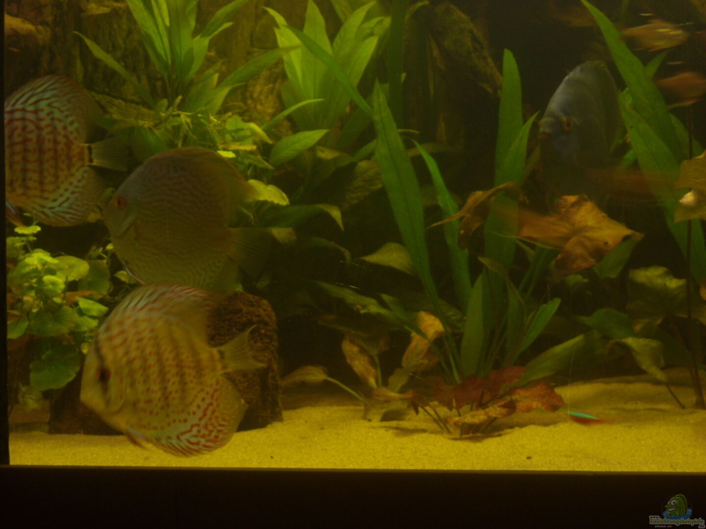 schönes Becken! Die Disken sind auch Spitze! Und klappt es mit dem Fressverhalten zwischen Disken und Skalaren? Aber die Skalare sind auch noch recht klein....
