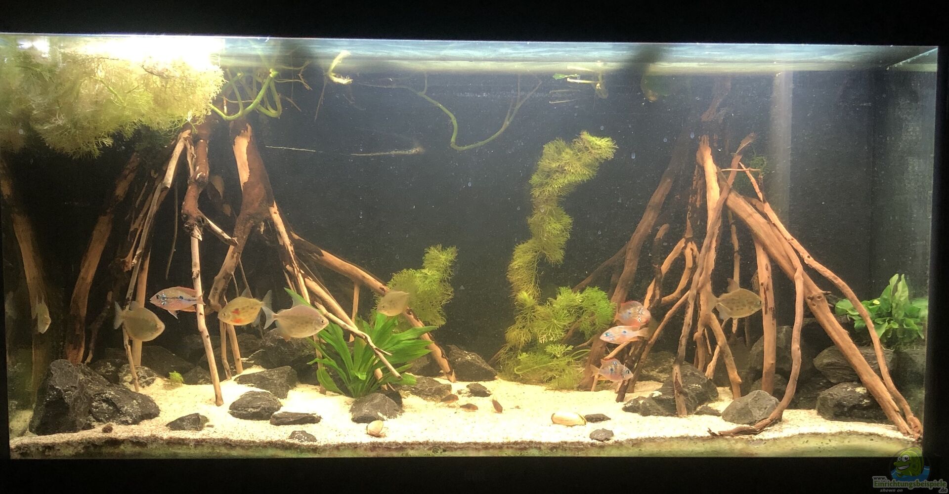 Die Barsche haben sich zu zwei harmonisierenden Päärchen zusammengefunden und laichen regelmä??ig, Eier werden, trotz intensiver Brutpflege, nachts (vermutlich von den Garnelen) gefressen.