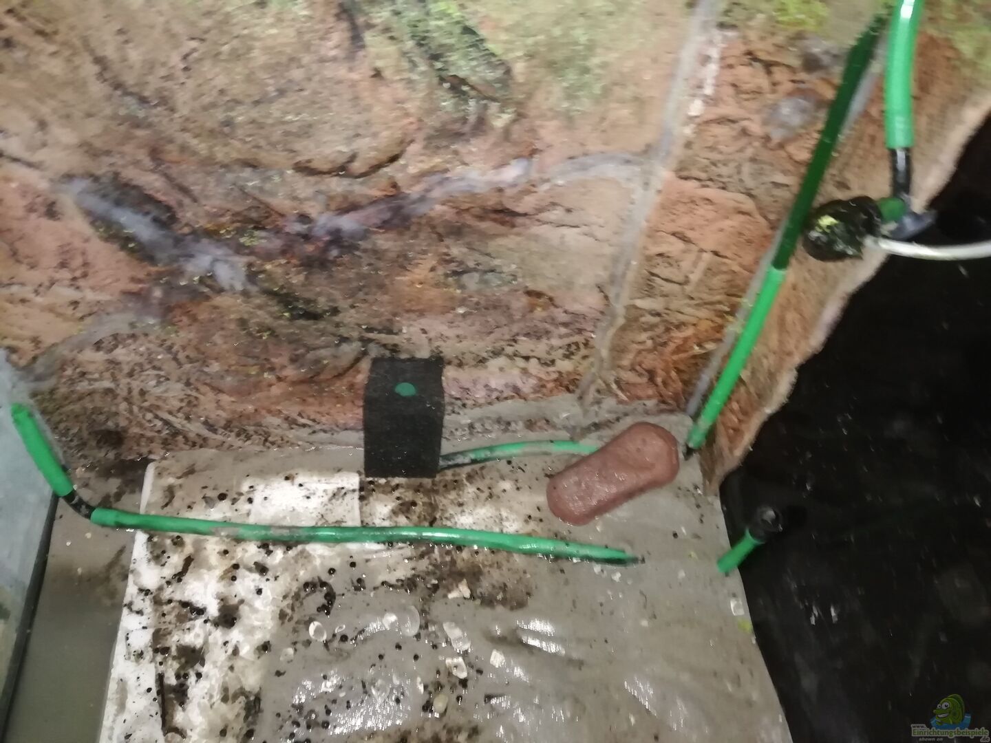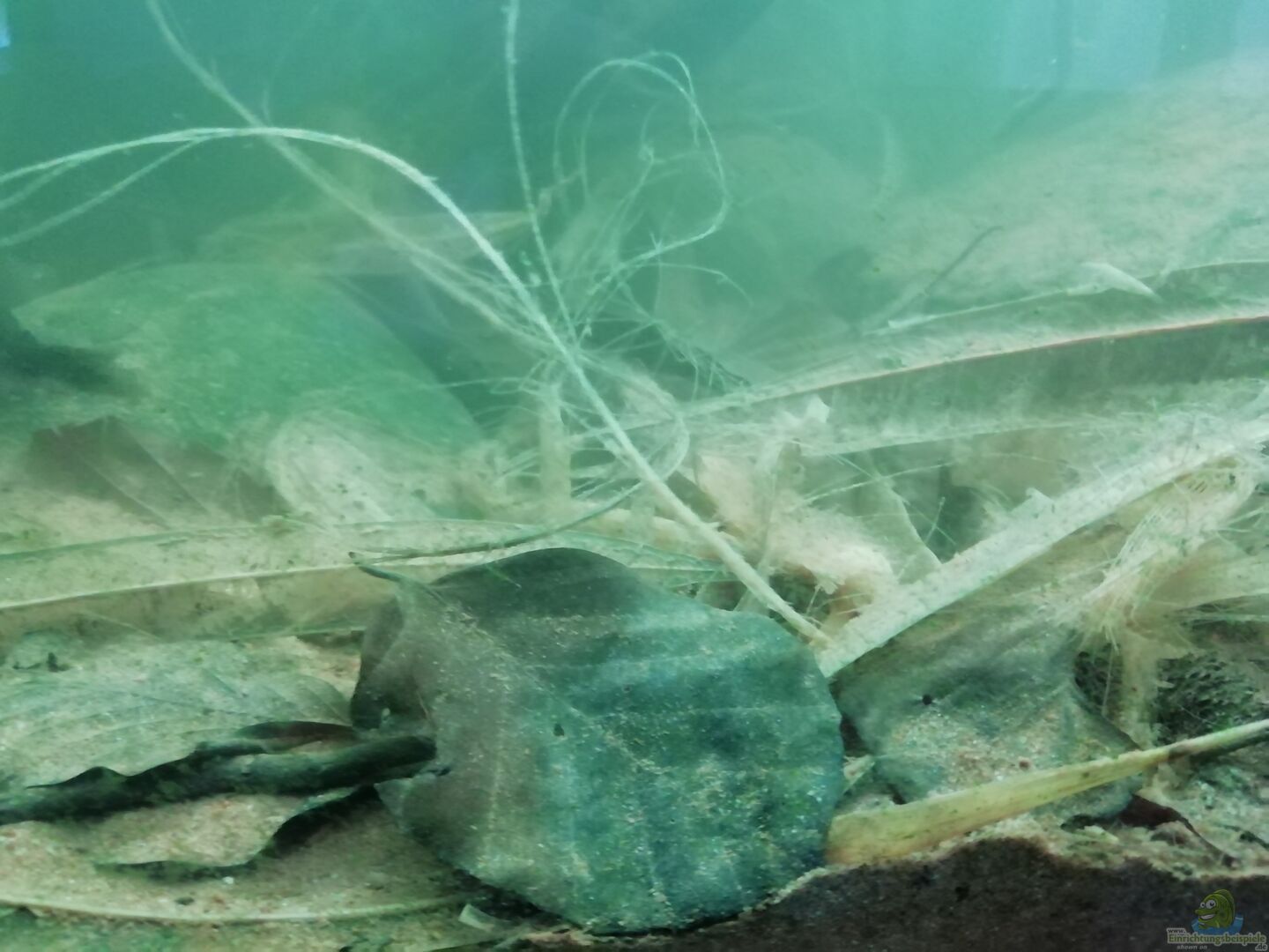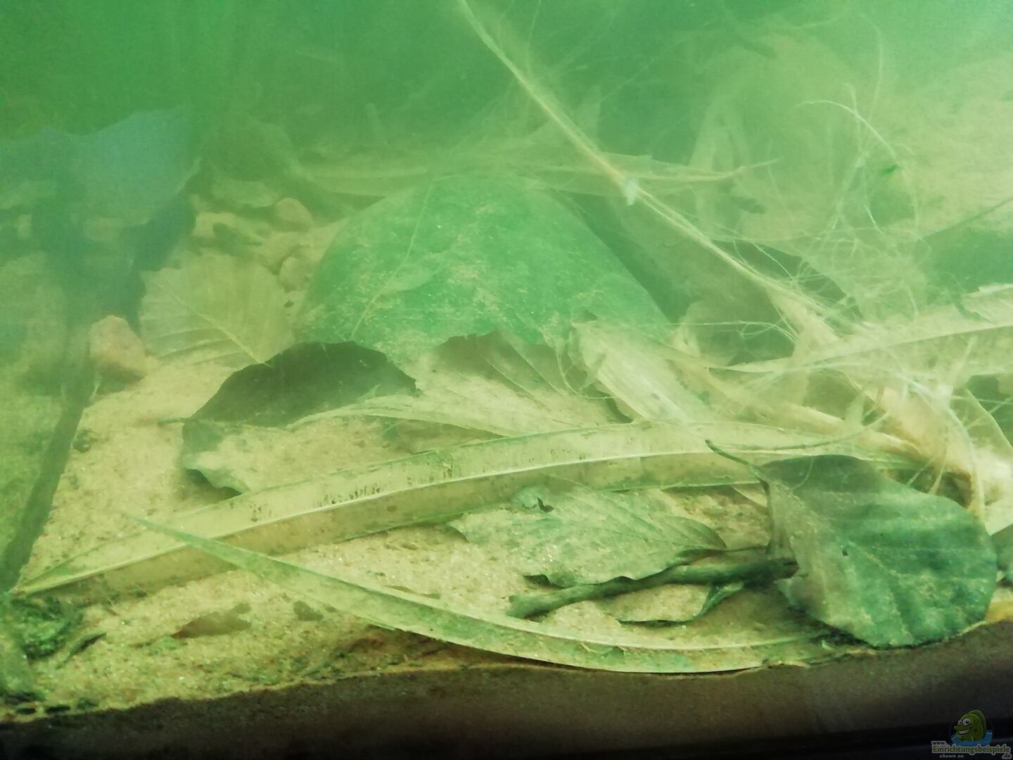 Zusätzlich ist noch verschiedens Laub (Banane, Ficus, Seemandelbaum, Eiche, Buche, Dracaena, Bambus), kleinere Buchenaststückchen und Erlenzapfen mit im Becken.