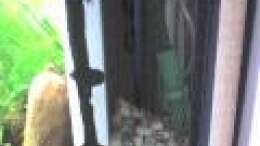 HMF in der linken ecke eingeklebt mit 40mm kabelkanälen, und einer groben 50mm Matte 25cmx50cm wo der gro??e filter und die luftgetriebene umwälzung stattfindet unten noch mit ein bischen siporax und kunststoffkugeln aufgefüllt