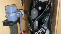 CO2 set von sera mit 500 gramm flasche innenliegendem ventil und Au??enreaktor ca.45 blasen pro min., bodenfluter 75 watt von hobby, 200 watt heizer