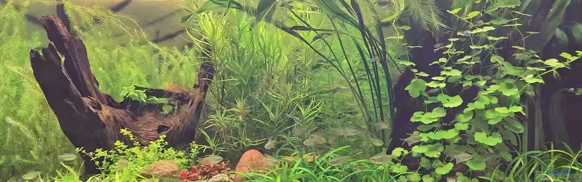 Düngung wird variiert je nach Pflanzenwachstum (z.B. wenn Mayaca fluviatilis helle Spitzen bekommt, mehr Eisendünger oder wenn Eichhornia diversifolia kümmert mehr Mineraldüngerlösung)