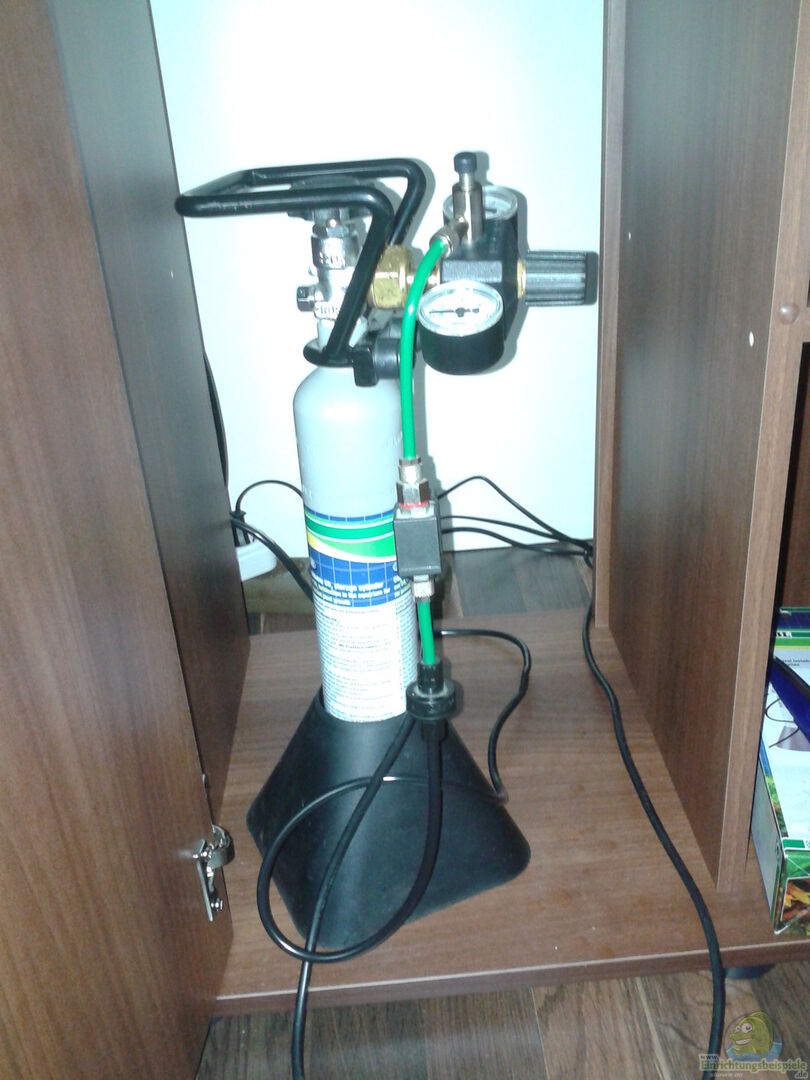 500g CO2-Anlage mit Nachtabschaltung und Rücklaufsicherung. Durchlauf ~ 20 Blasen/min