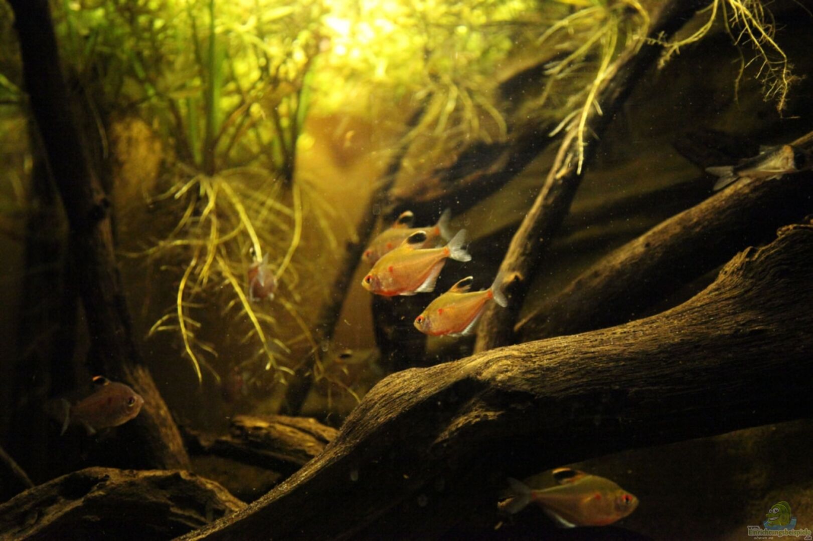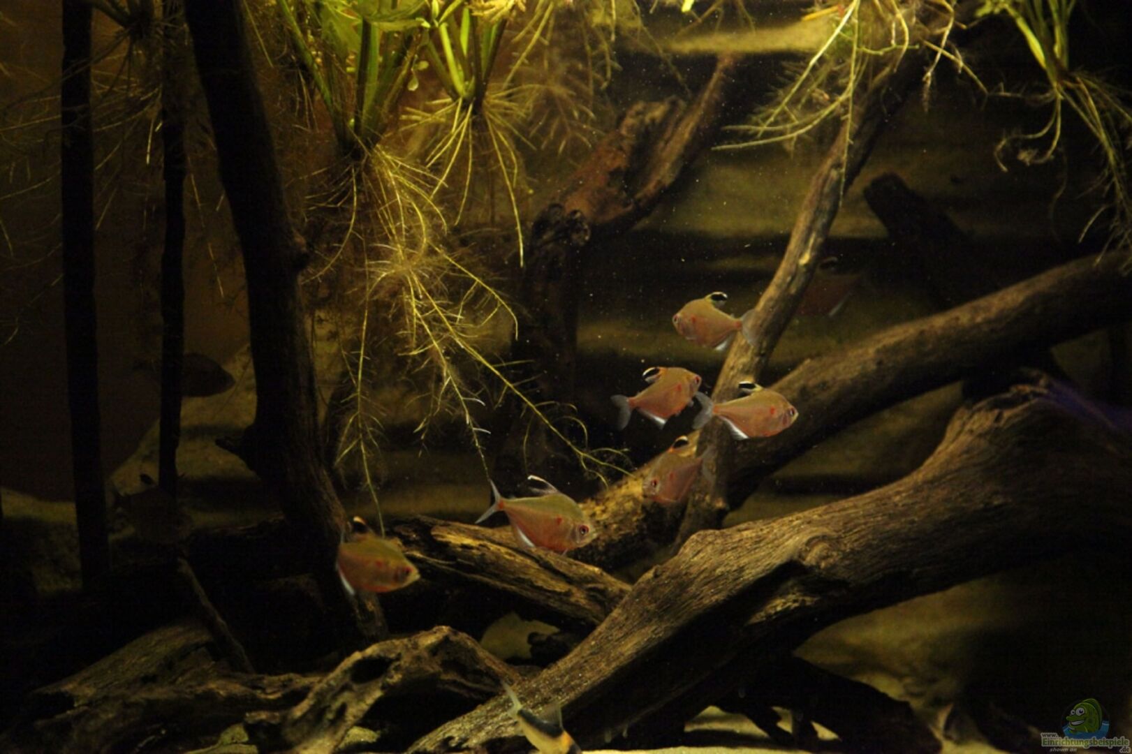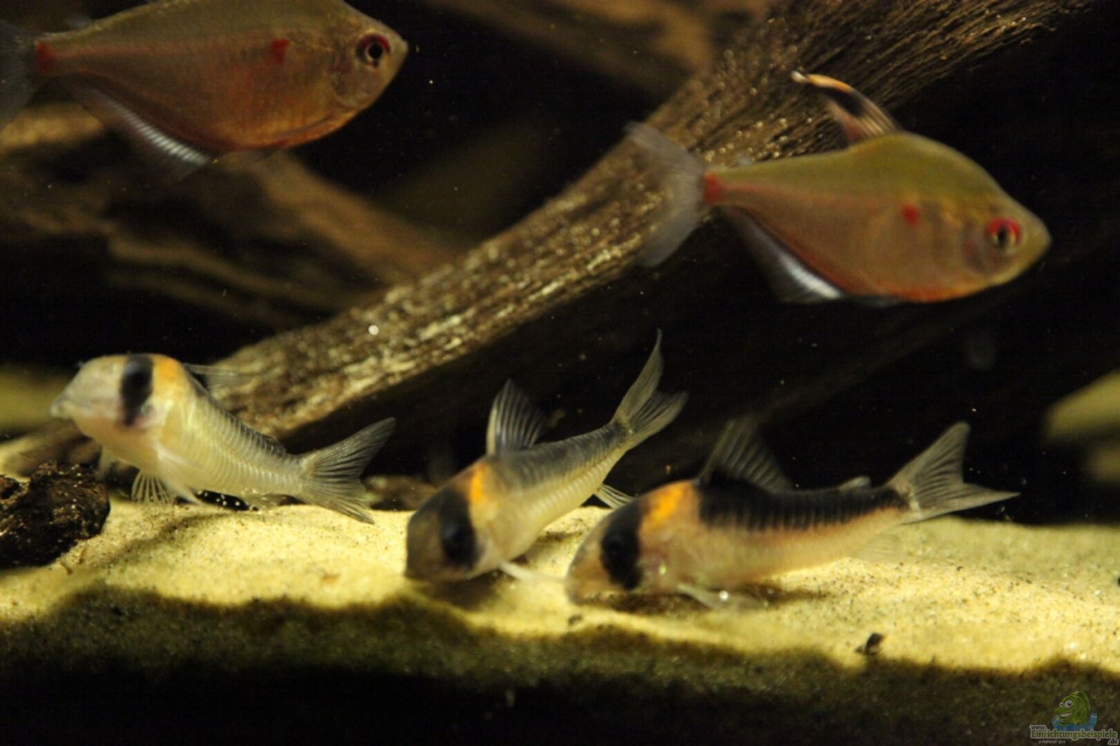 Statt der Spitzmaul-Ziersalmler und Otos befindet sich jetzt ein Schwarm Hyphessobrycon socolofi im Becken, die zusammen mit den nach wie vor vorhandenen Corydoras adolpho im Rio Negro leben.
