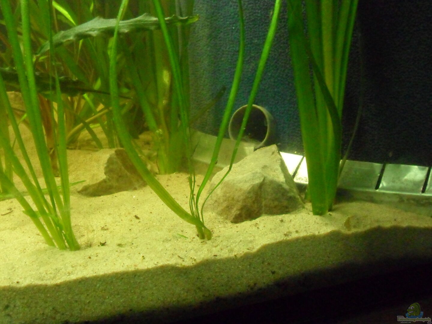 beim Hausbau verwendeter Lehmputz findet auch im Aquarium platz, als natürlicher Bodengrund direkt aus der nachbarschaft. den Bodenfluter habe ich mit Loombands der Tochter etwas höher an die geklebten saugnäpfe angebunden um über dem Lehm-Sand-gemisch zu bleiben, zwecks der stärkeren verdichtung des Lehms dann im Bodengrund. (denke ich zumindestens) darüber brauner Flu??sand 1-2 mm körnung