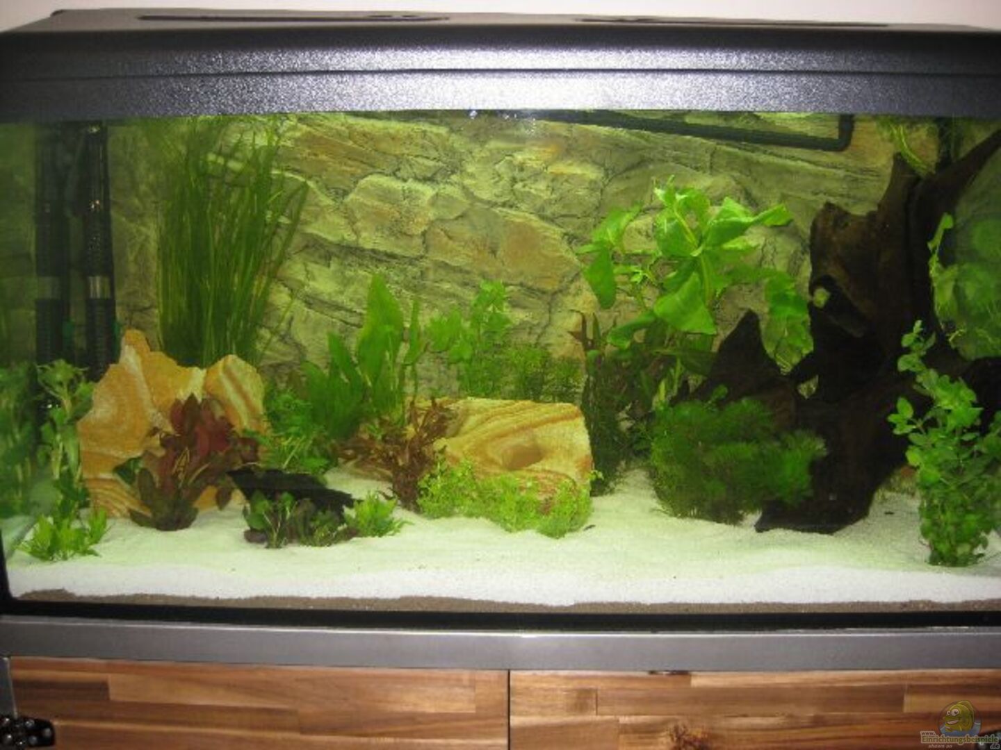 Becken läuft jetzt erst seit 4 Wochen, Filter war aber in Betrieb, habe auch teilweise Wasser von einem Freund bekommen, so dass es auf jeden Fall schon ´Aquariumfreundliches´ Wasser ist! Seit nun 1, 5 Wochen sind die Fische drin, ich weiss, war früh, aber mir wurd egesagt das ich das machen soll, sonst würden die Microorganismen im Filter absterben. Bis jetzt ist auch alles tutti :) Pflanzen wachsen natürlich noch!! Das Foto der Frontansicht ist vom ersten Tag ;)