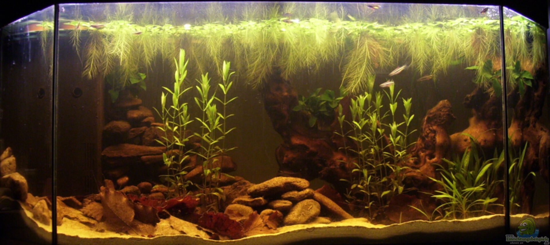 gefällt mir sehr gut dein Becken , ich liebe so naturnahe eingerichtete Becken , auch der Besatz sehr schön gewählt , nicht zu voll , was soll man sagen , Klasse 6 Punkte.