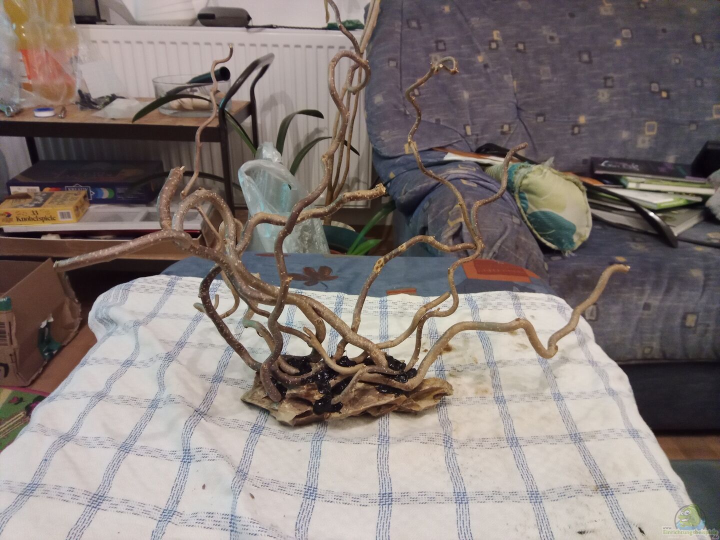 - 4-5 kleine Haselnusszweige, diese wurden auf ein Stück Drachengetein geklebt