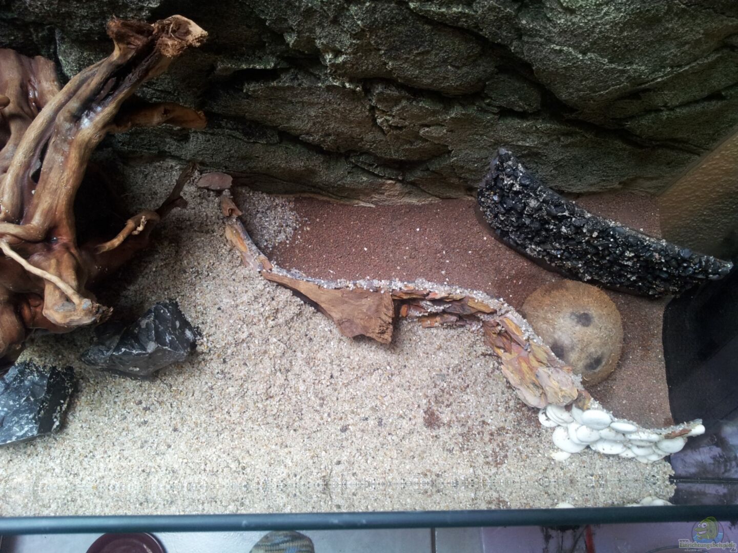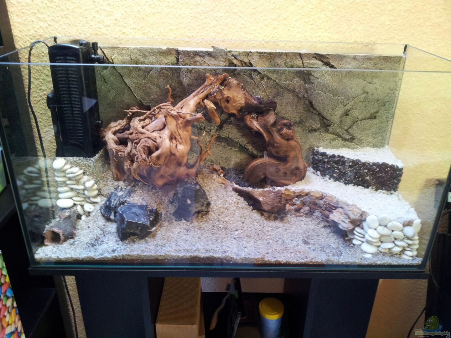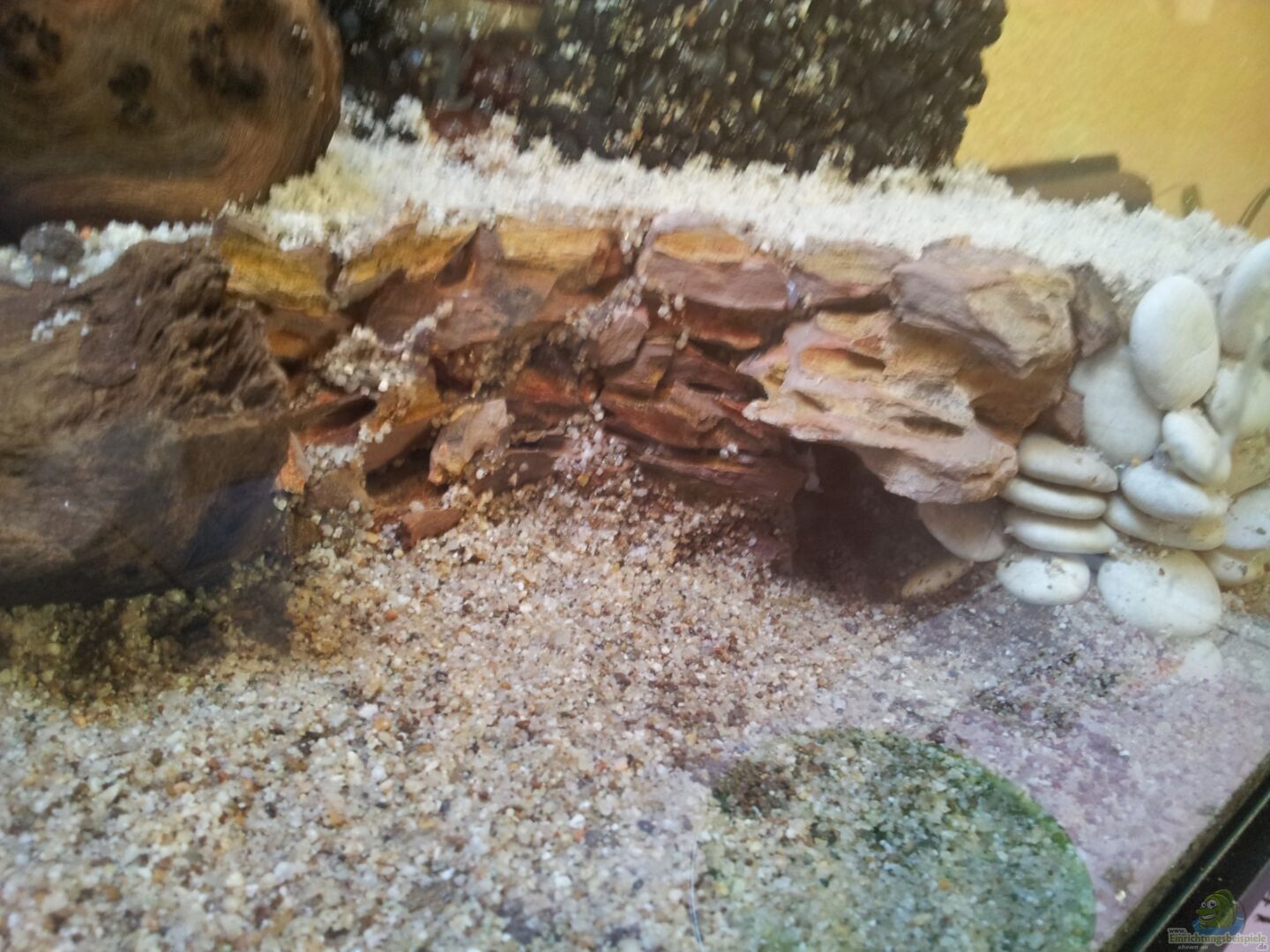 Der Bodengrund besteht aus Nährboden. Darauf ist dann Naarbender-Kies und feiner Quarzsand welche durch die selbst gemachten Trennungswände voneinander getrennt sind.