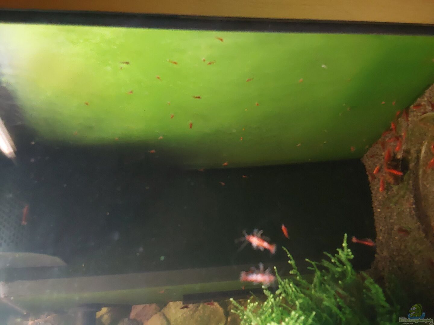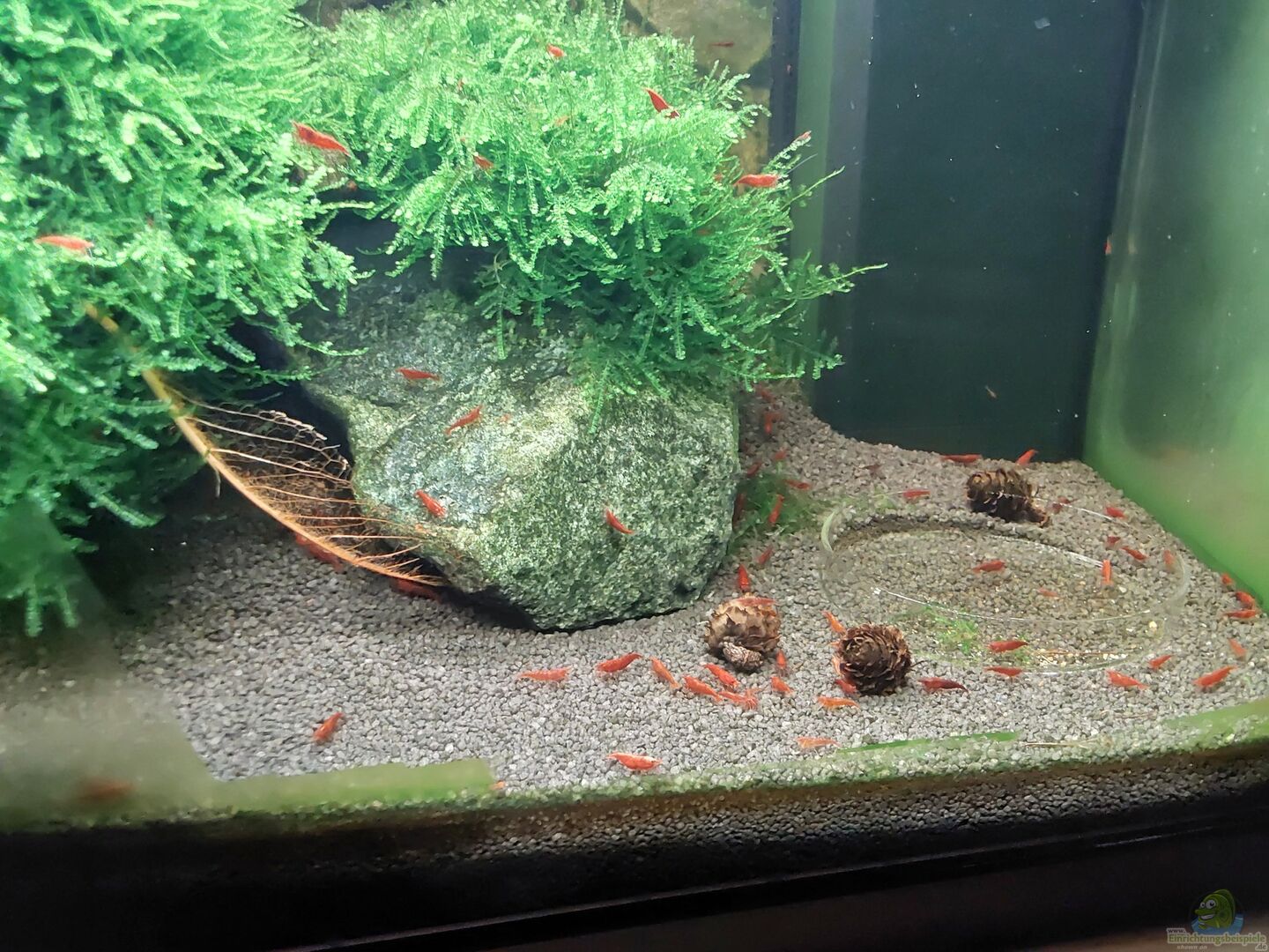 In dem Becken gibt es kein Heizstab, denn für Zwerggarnelen nicht zwingend erforderlich.Sollte es unter 18 Grad abfallen kommt einer in die Filterbox vom Innenfilter.