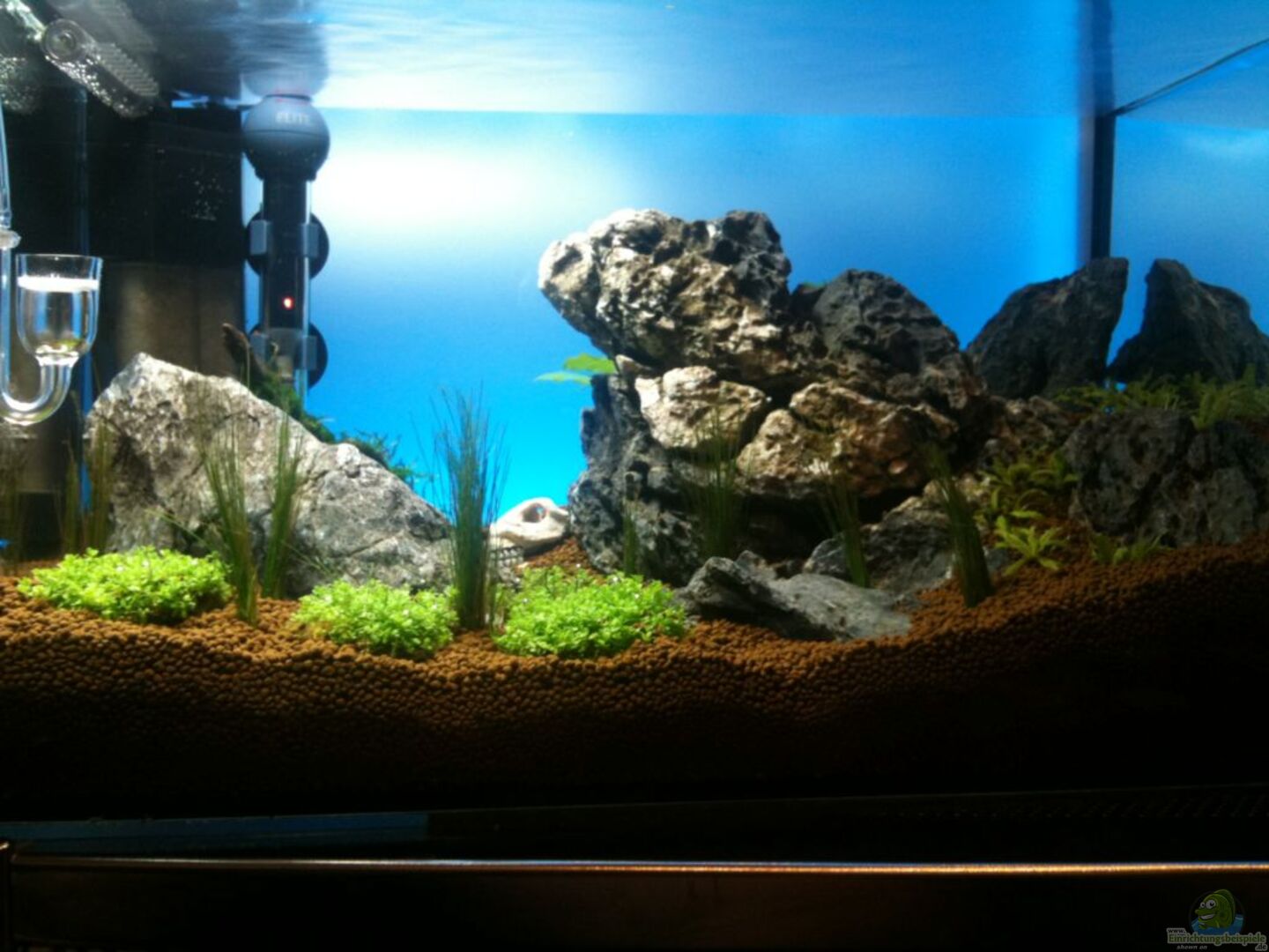 So, zum Scape. Ein wichtiger Schritt ist der gelungen, und zwar das Becken grö?er wirken zu lassen, als es ist. Die Steinanordnungen sind ok, auch wenn die Strukturierungen sehr stark voneinander abweichen. Ein wenig einheitlicher siehts besser aus. Das Eleocharis ist nicht wirklich gut gesetzt. Erstens sieht es nicht schön aus so büschelweise mal hier mal da, zweitens werden später, wenn die Pflanzen anfangen zu wachsen, das Eleocharis und das HCC unweigerlich zusammenwachsen. Das ist unnötig schwer zu pflegen und sieht, wenn mans nicht pflegt, nicht gut aus. Ich bin mir auch nicht sicher ob das E.parvula nicht doch eher E.acicularis ist. Wie stellst du dir die weitere Düngung vor? Ollis Aussage `Wasserwerte perfekt` wird nicht reichen, um vernünftigen Pflanzenwuchs zu erreichen und Algenwuchs zu verhindern.
