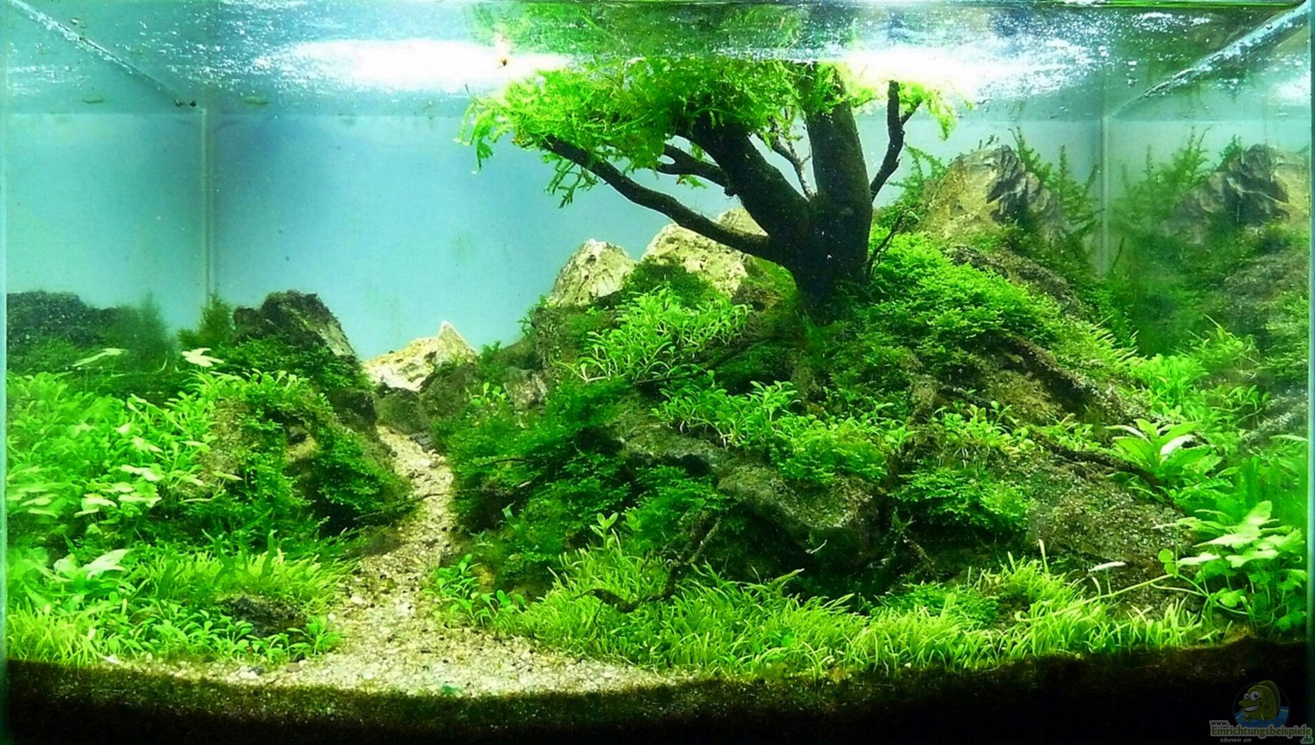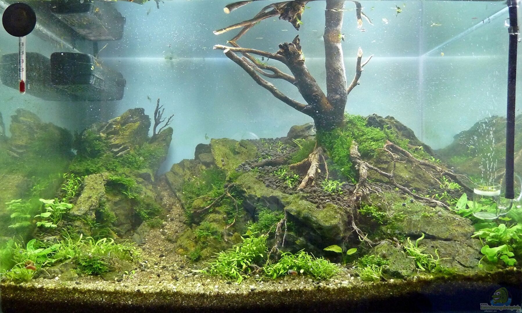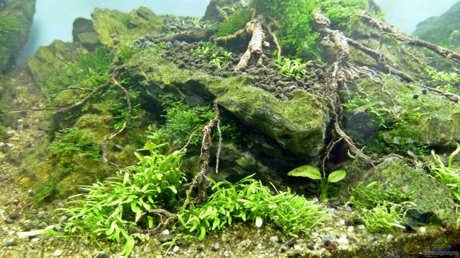 Da es mein Ziel ist in diesem kleinen Becken eine möglichst gro??e, räumliche Wirkung zu erzielen, wurde für die Fotos sämtliche Technik aus dem Becken entfernt, sieht einfach besser aus so. Die Gerätschaften würden die Proportionen des Layouts mit einem Blick zunichte machen, wie man auf dem "Beweisfoto" in der Sparte "Technik" gut erkennen kann. Es soll ja nicht zu dem Irrglauben kommen, ich würde das Becken techniklos betreiben, das wäre nämlich äusserst kniffelig. ;)